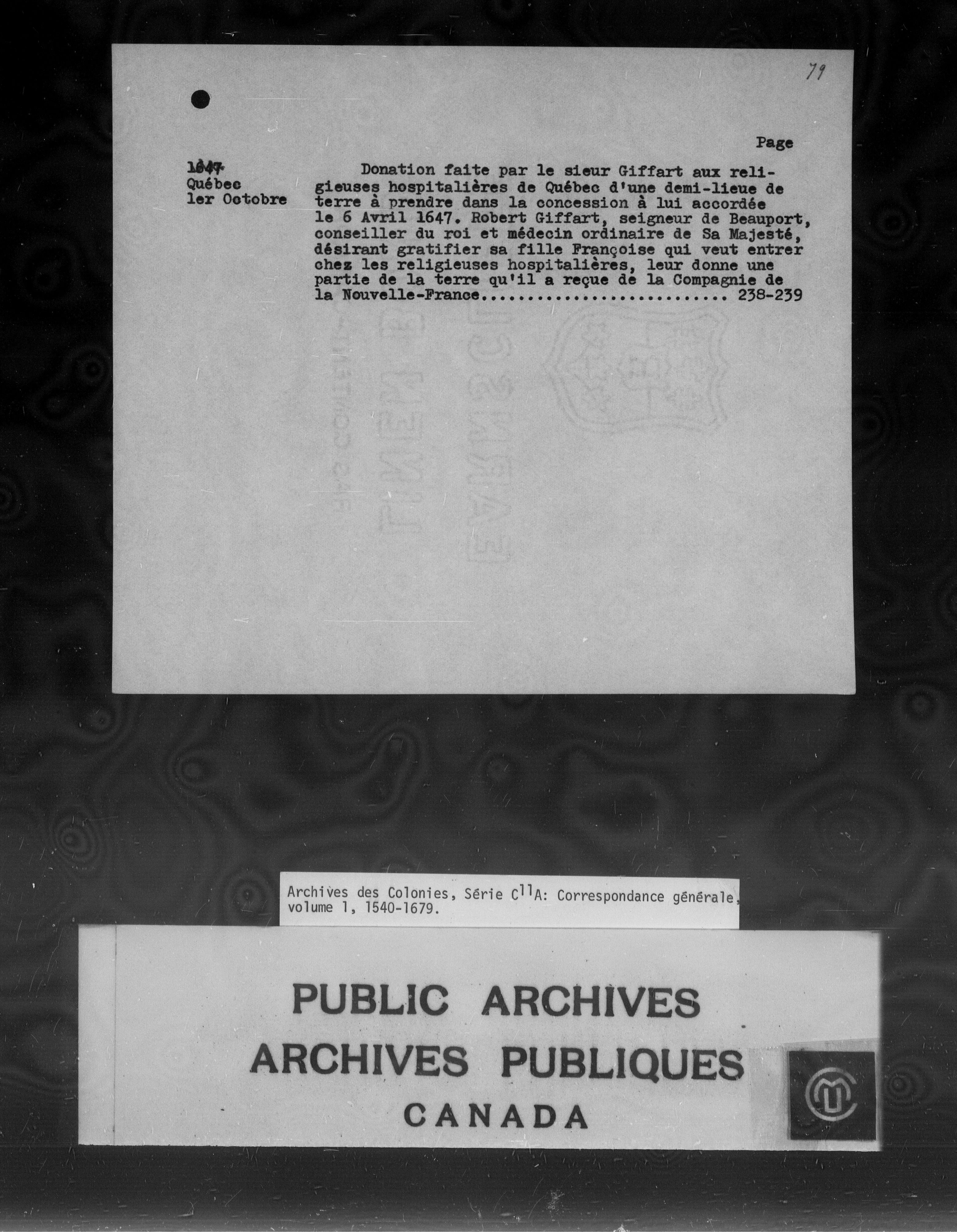 France fonds des Colonies : Série C11A. Correspondance générale; Canada - 4550