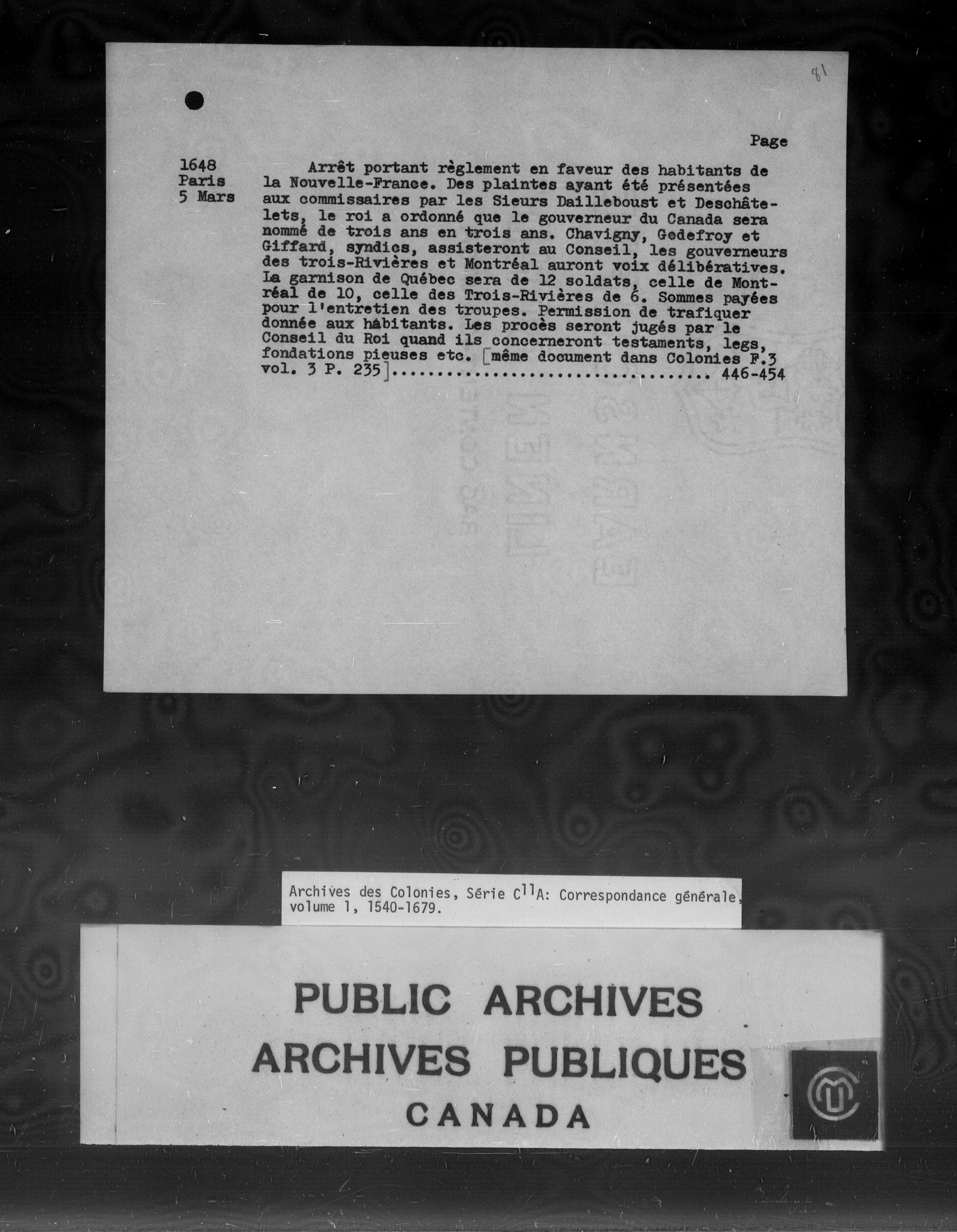 France fonds des Colonies : Série C11A. Correspondance générale; Canada - 4550