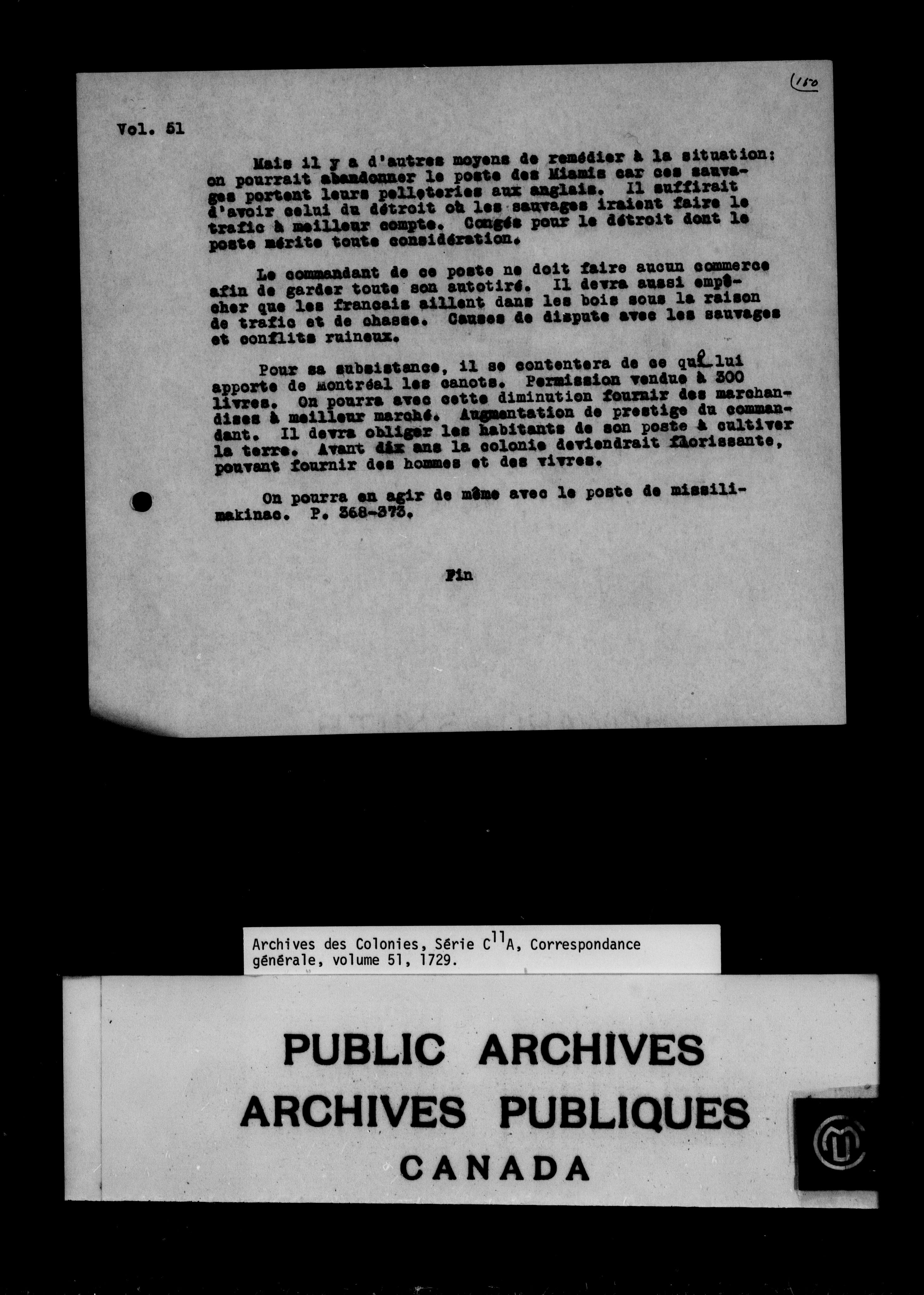 France fonds des Colonies : Série C11A. Correspondance générale; Canada - 4551