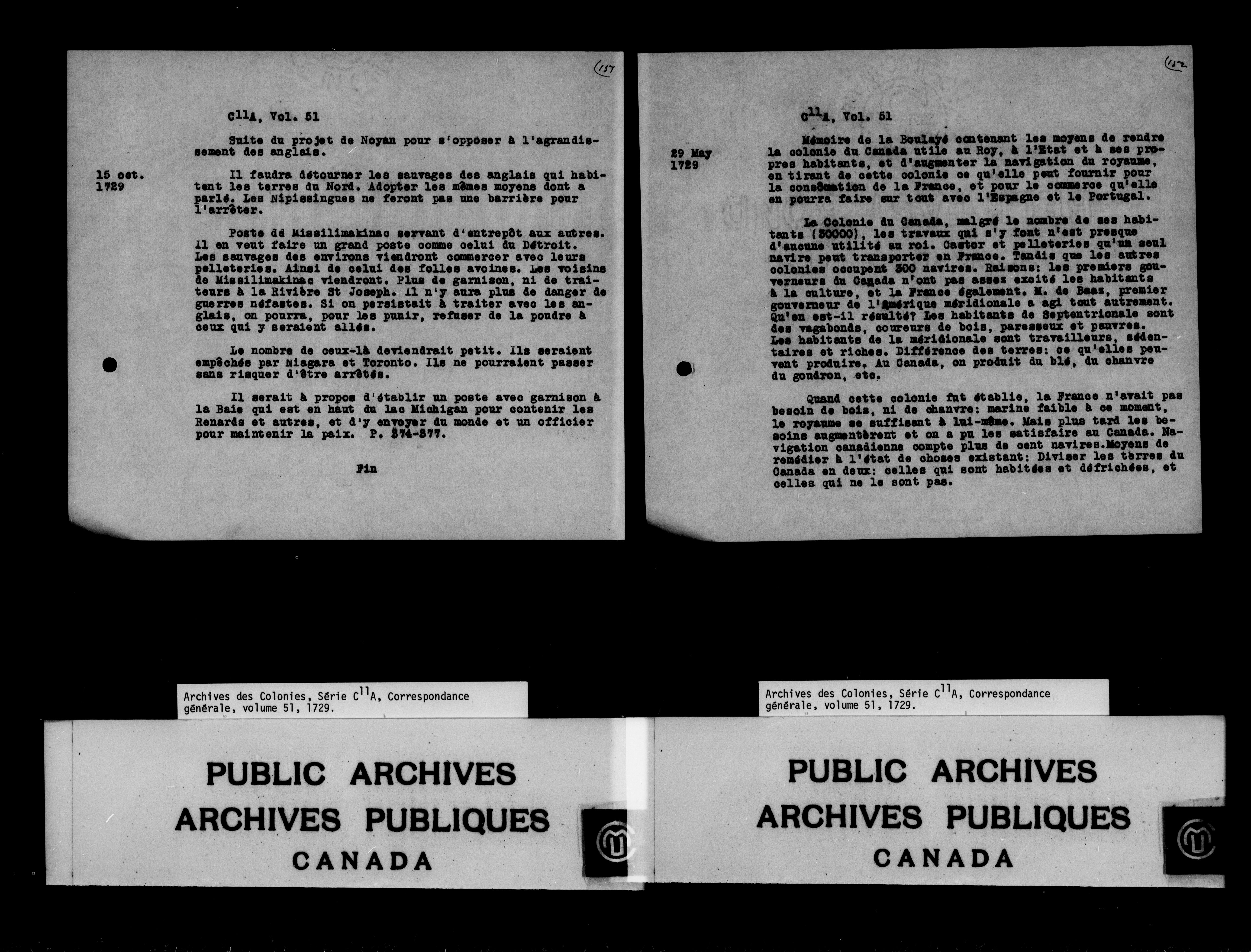 France fonds des Colonies : Série C11A. Correspondance générale; Canada - 4551