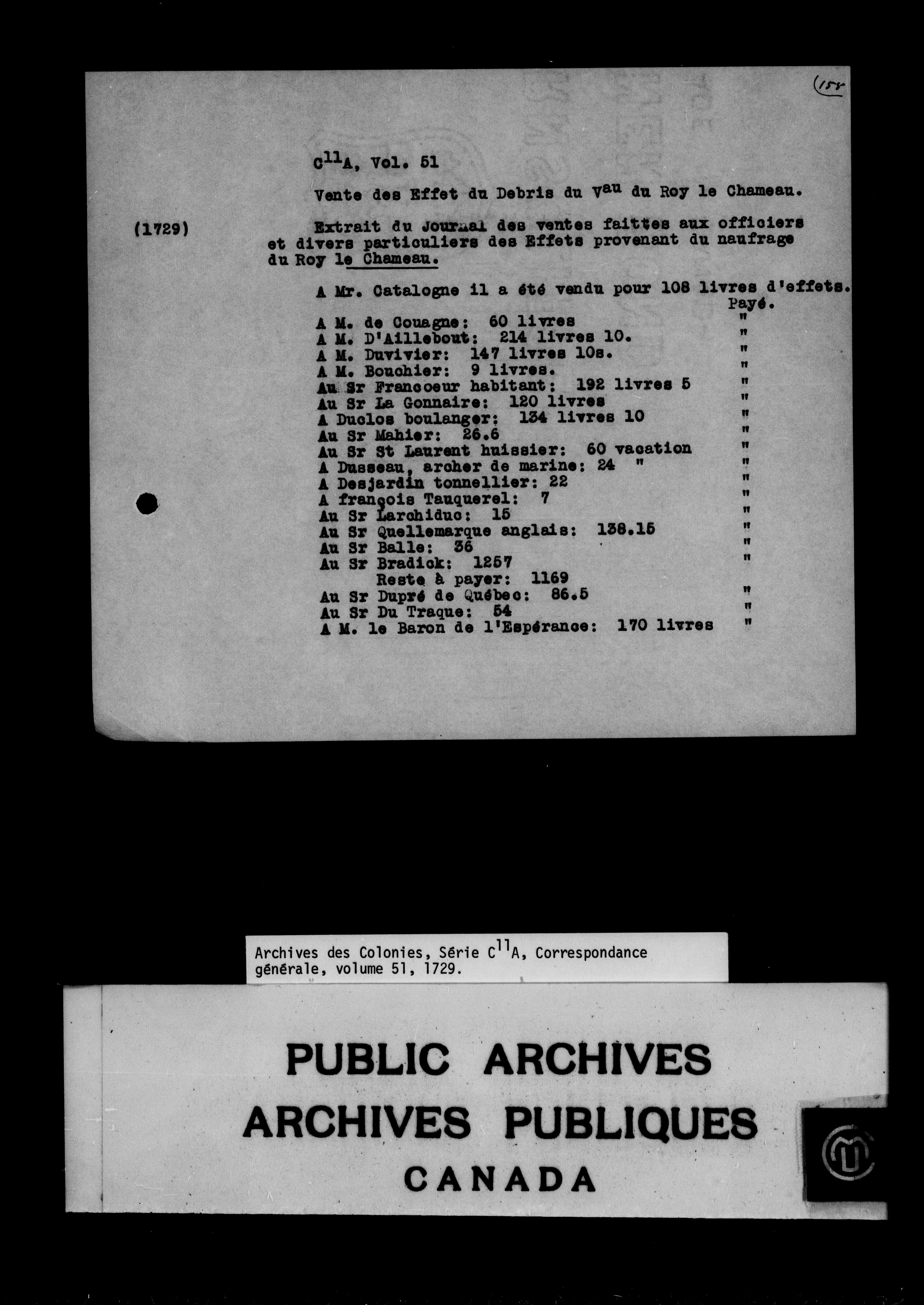 France fonds des Colonies : Série C11A. Correspondance générale; Canada - 4551