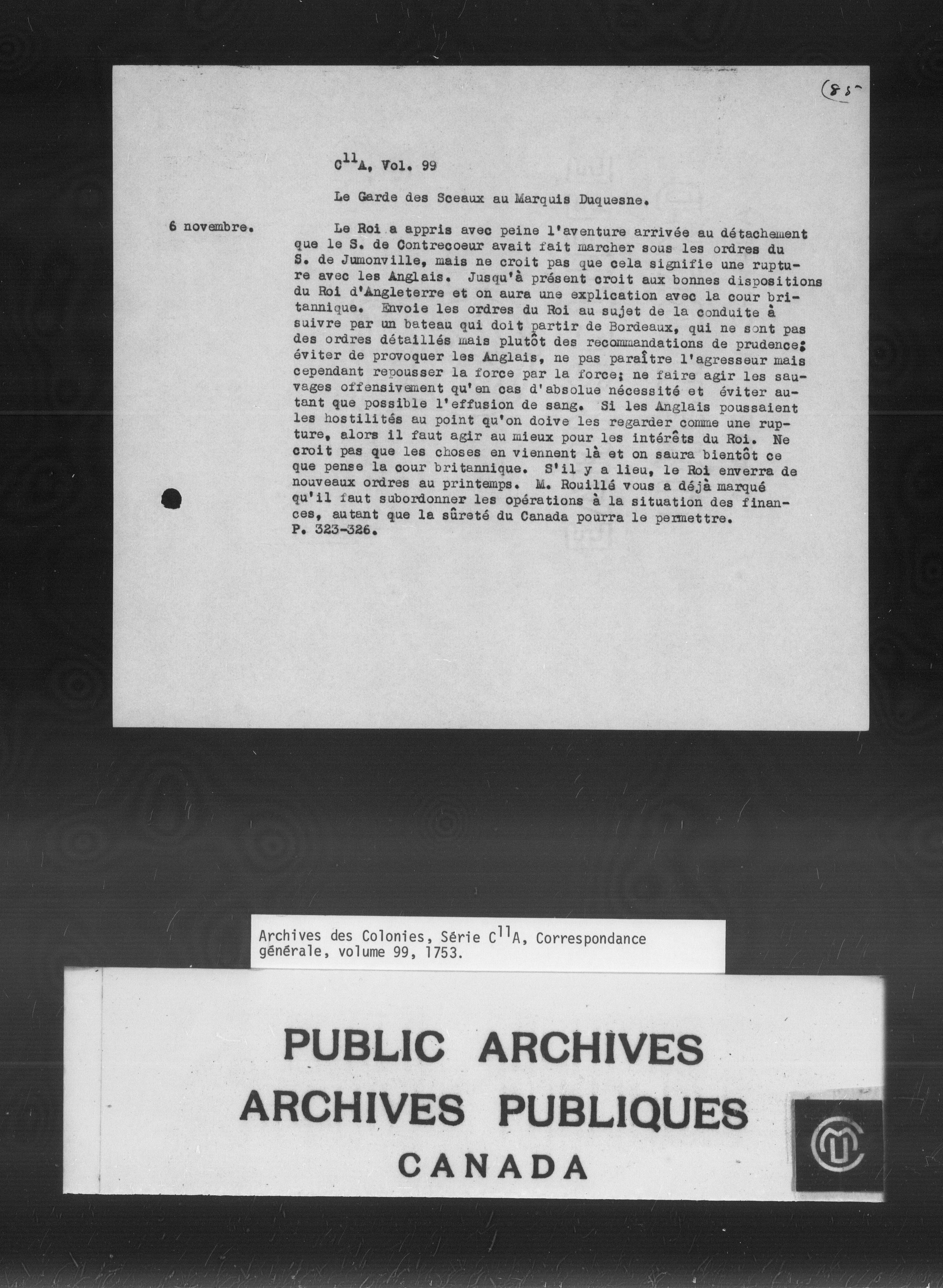 France fonds des Colonies : Série C11A. Correspondance générale; Canada - 4553
