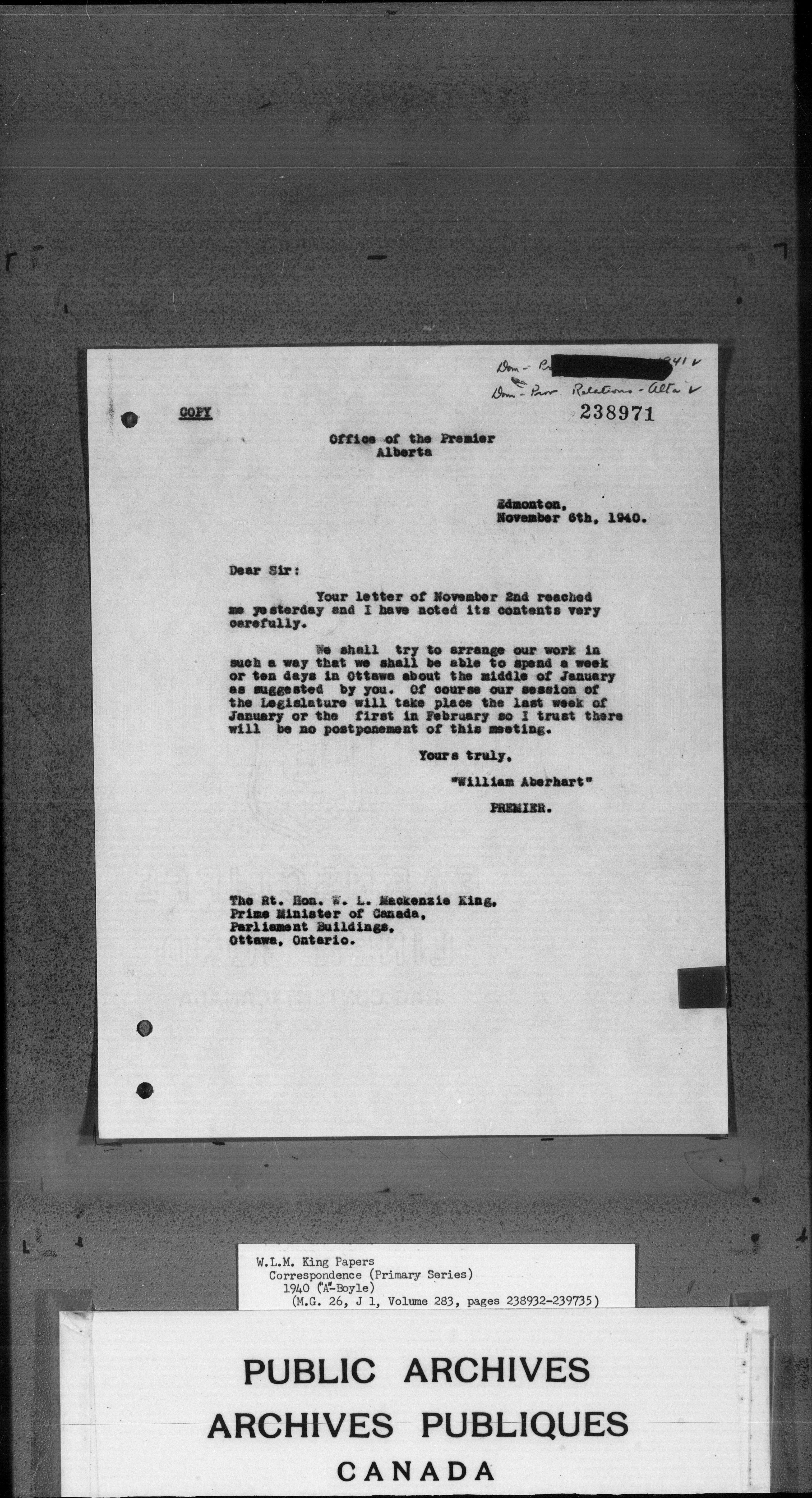 William Lyon Mackenzie King : Primary series correspondence (J1) - 4566