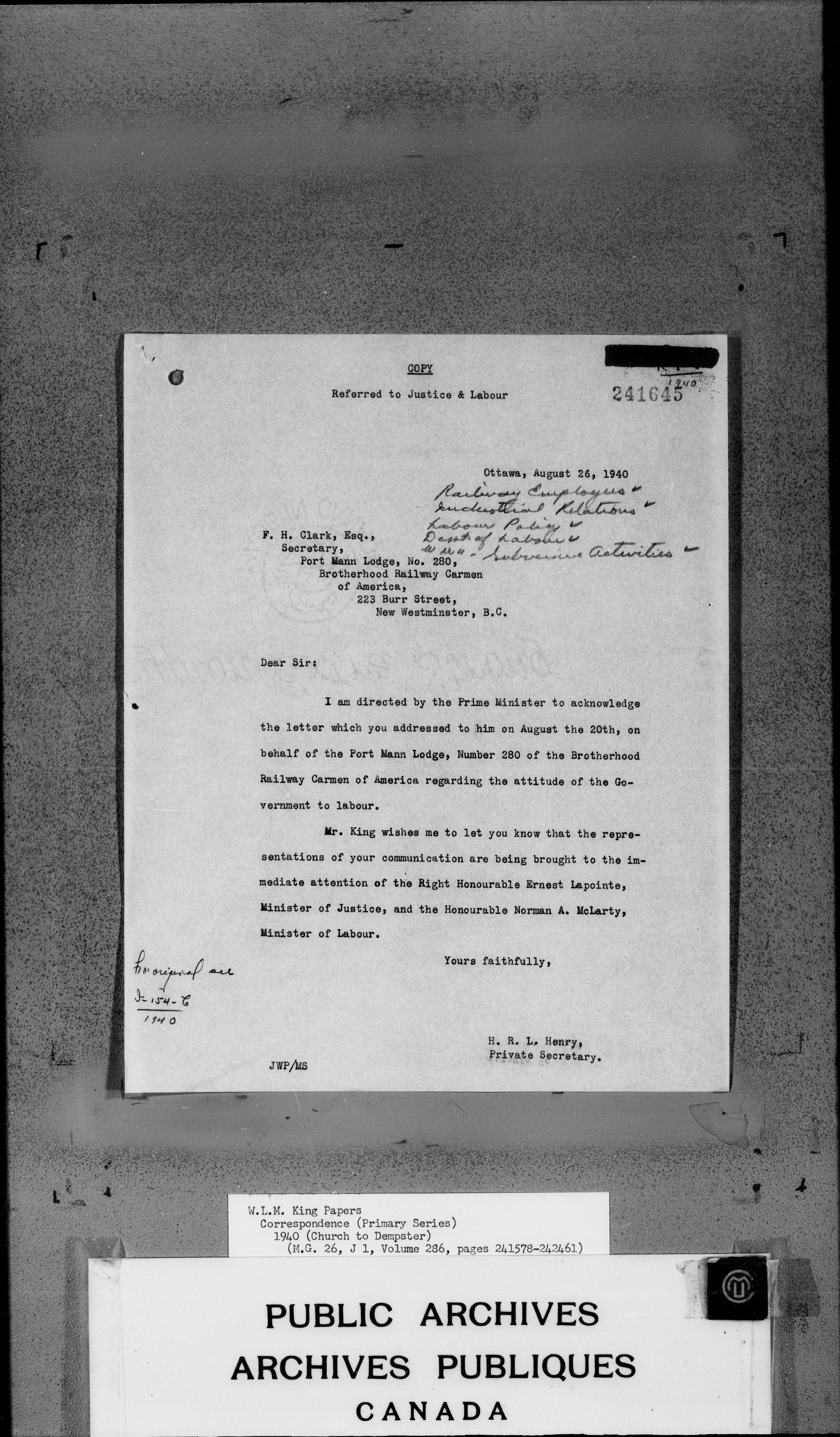 William Lyon Mackenzie King : Primary series correspondence (J1) - 4568
