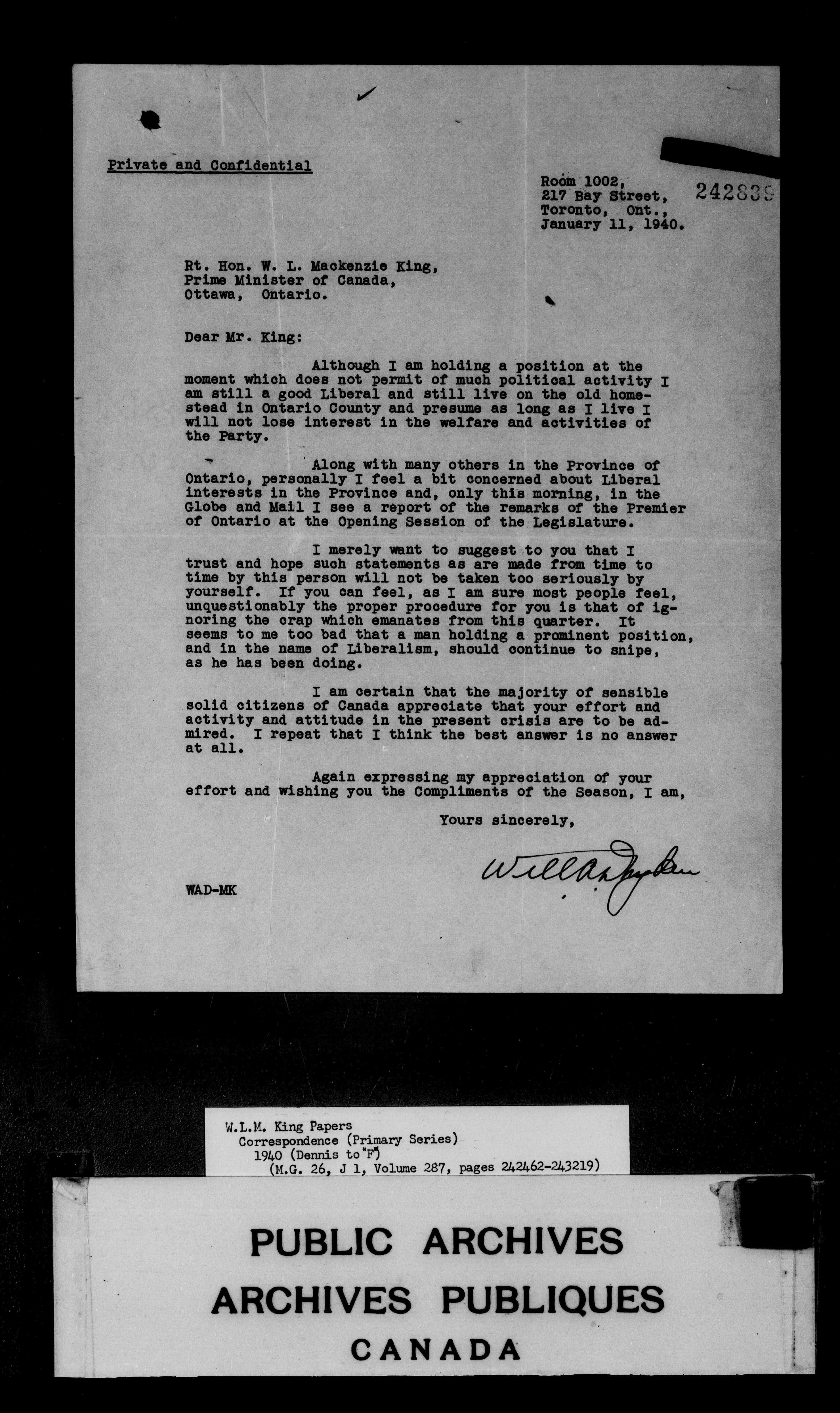 William Lyon Mackenzie King : Primary series correspondence (J1) - 4569
