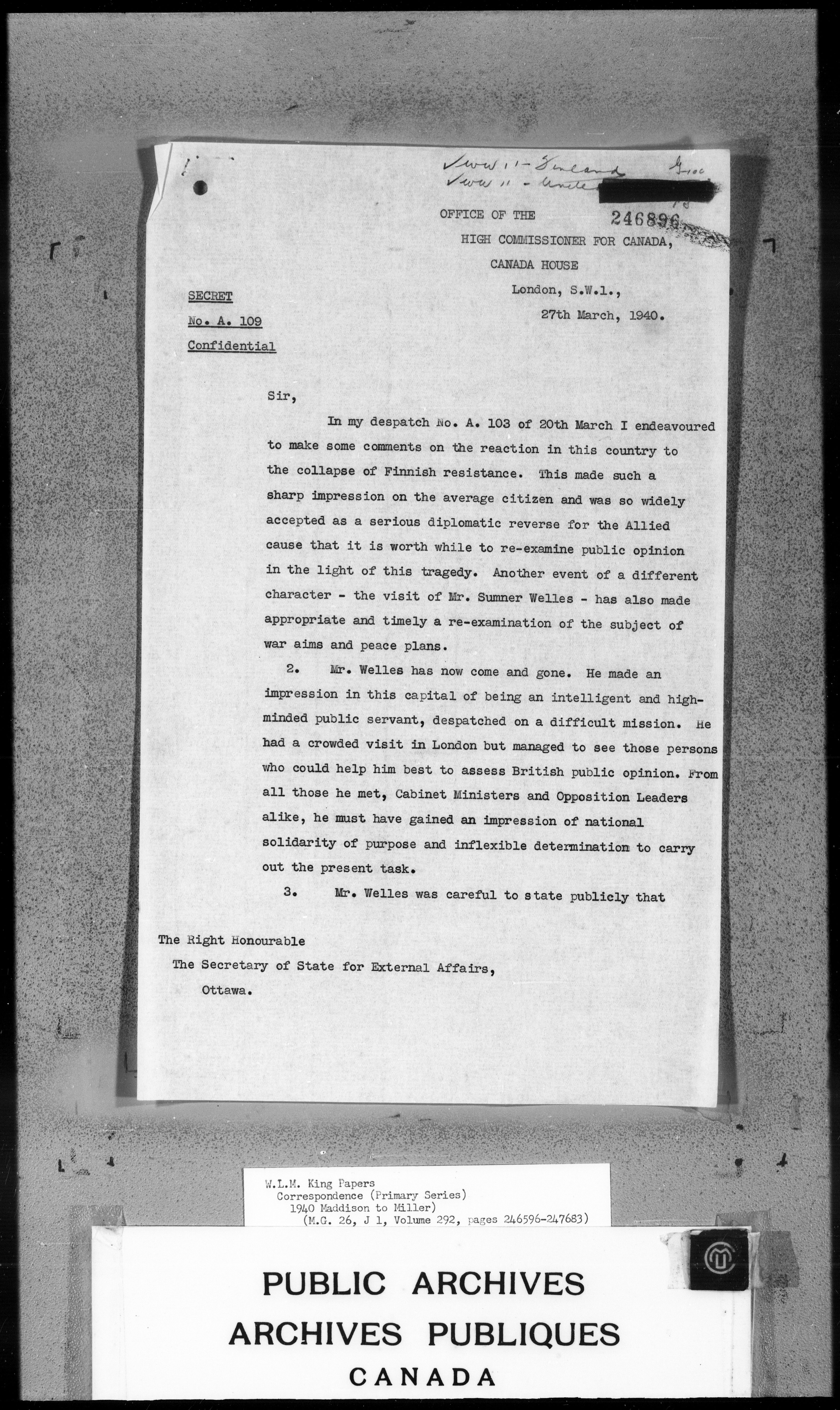 William Lyon Mackenzie King : Primary series correspondence (J1) - 4571