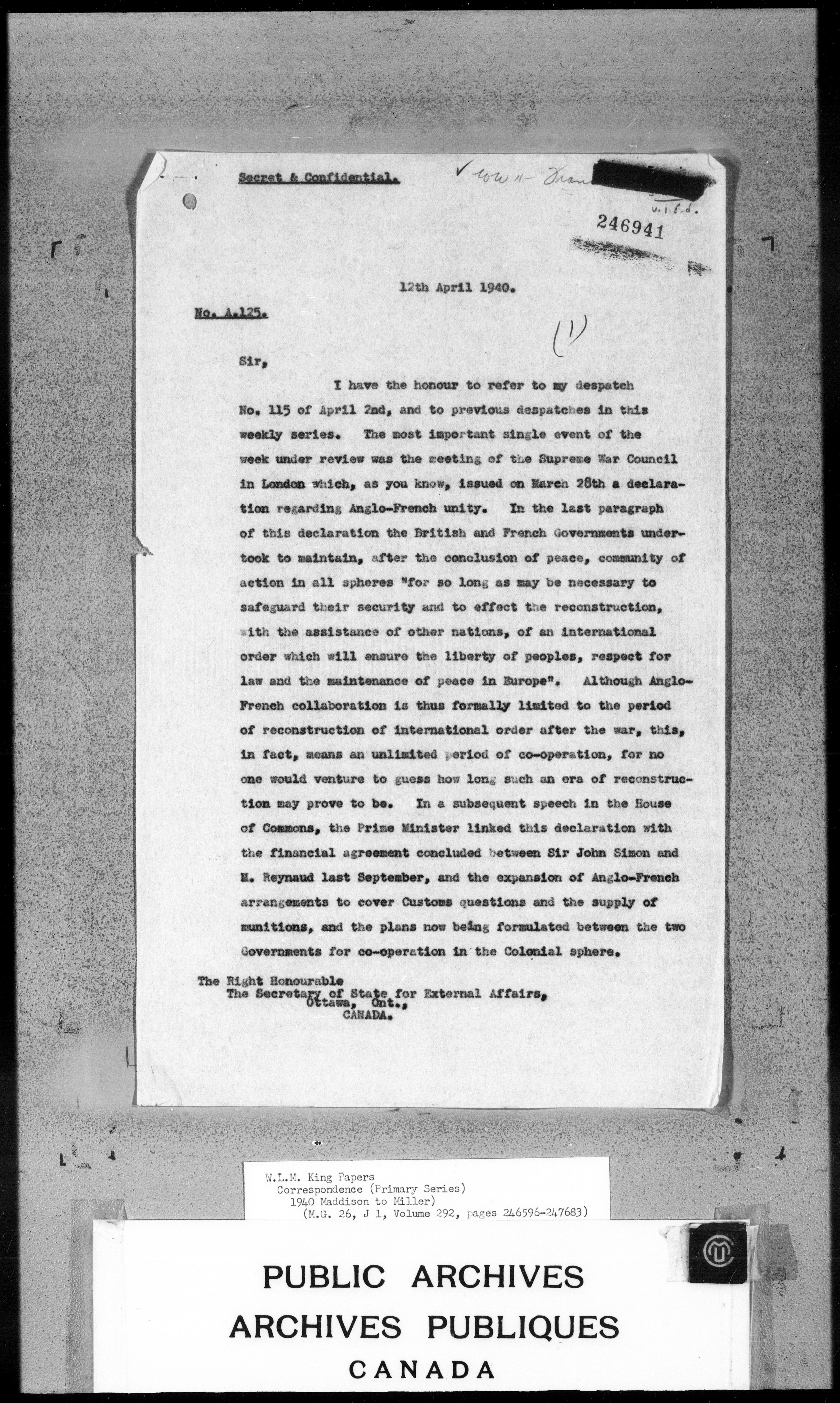 William Lyon Mackenzie King : Primary series correspondence (J1) - 4571
