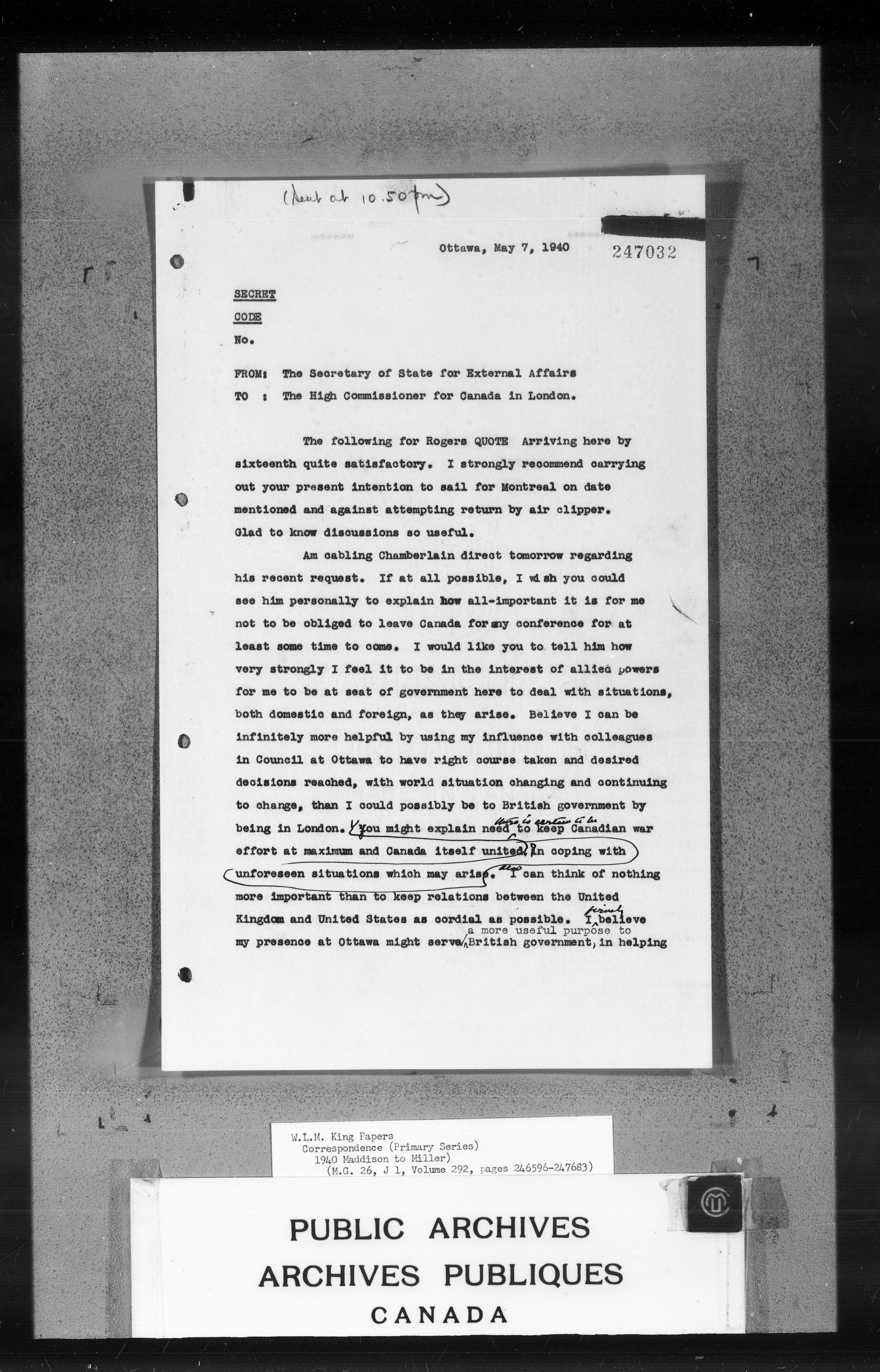 William Lyon Mackenzie King : Primary series correspondence (J1) : C-4572