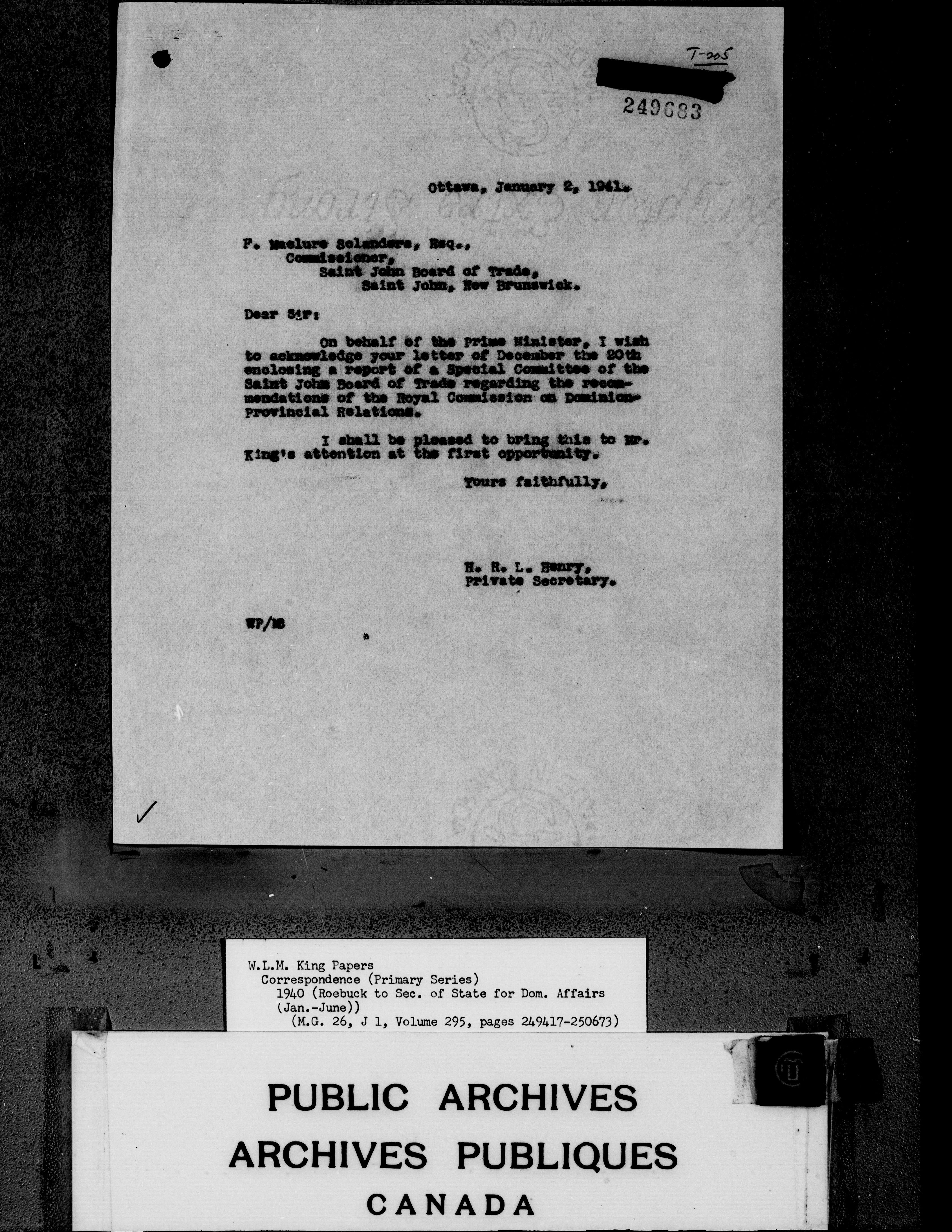 William Lyon Mackenzie King : Primary series correspondence (J1) : C-4573