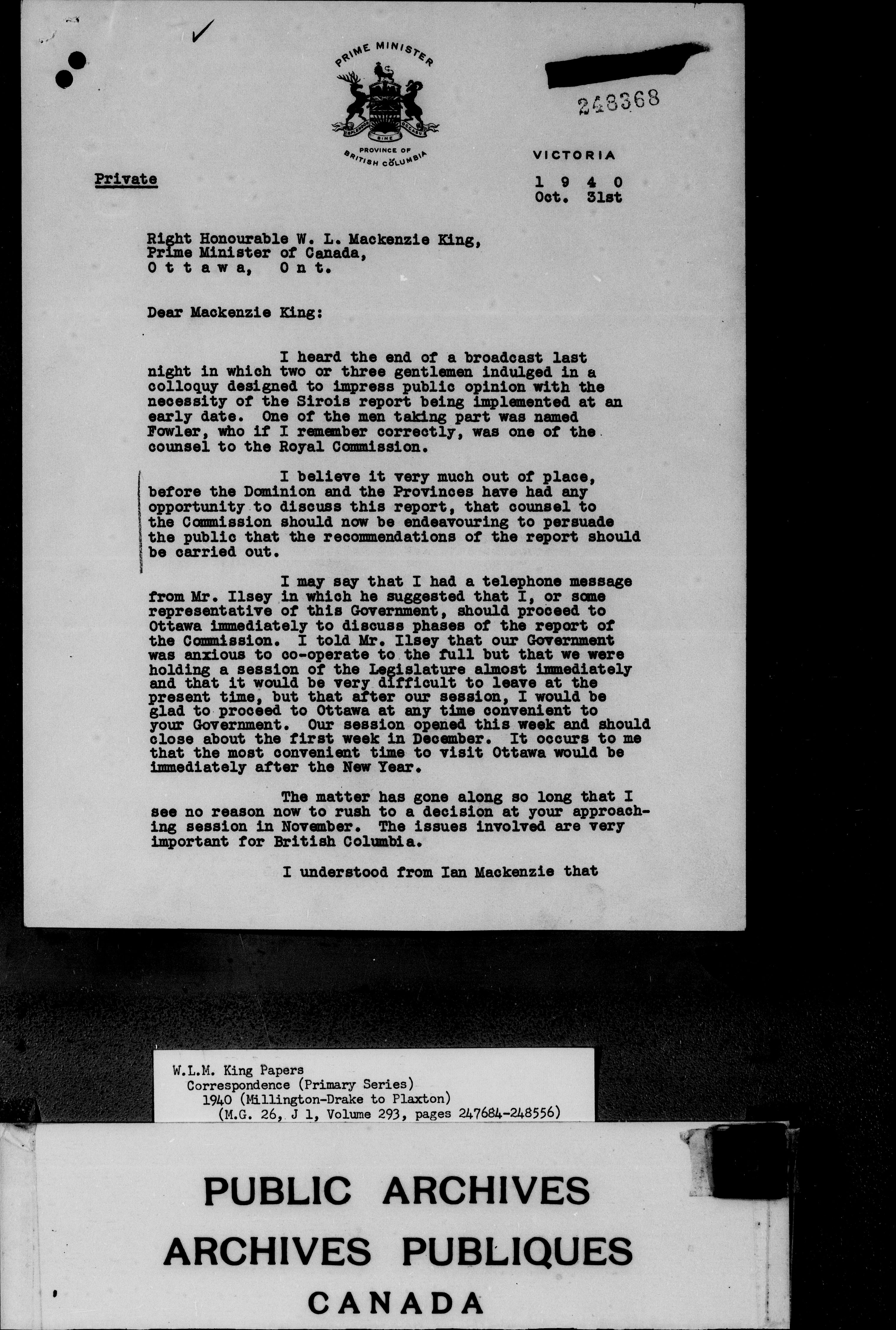 William Lyon Mackenzie King : Primary series correspondence (J1) : C-4573