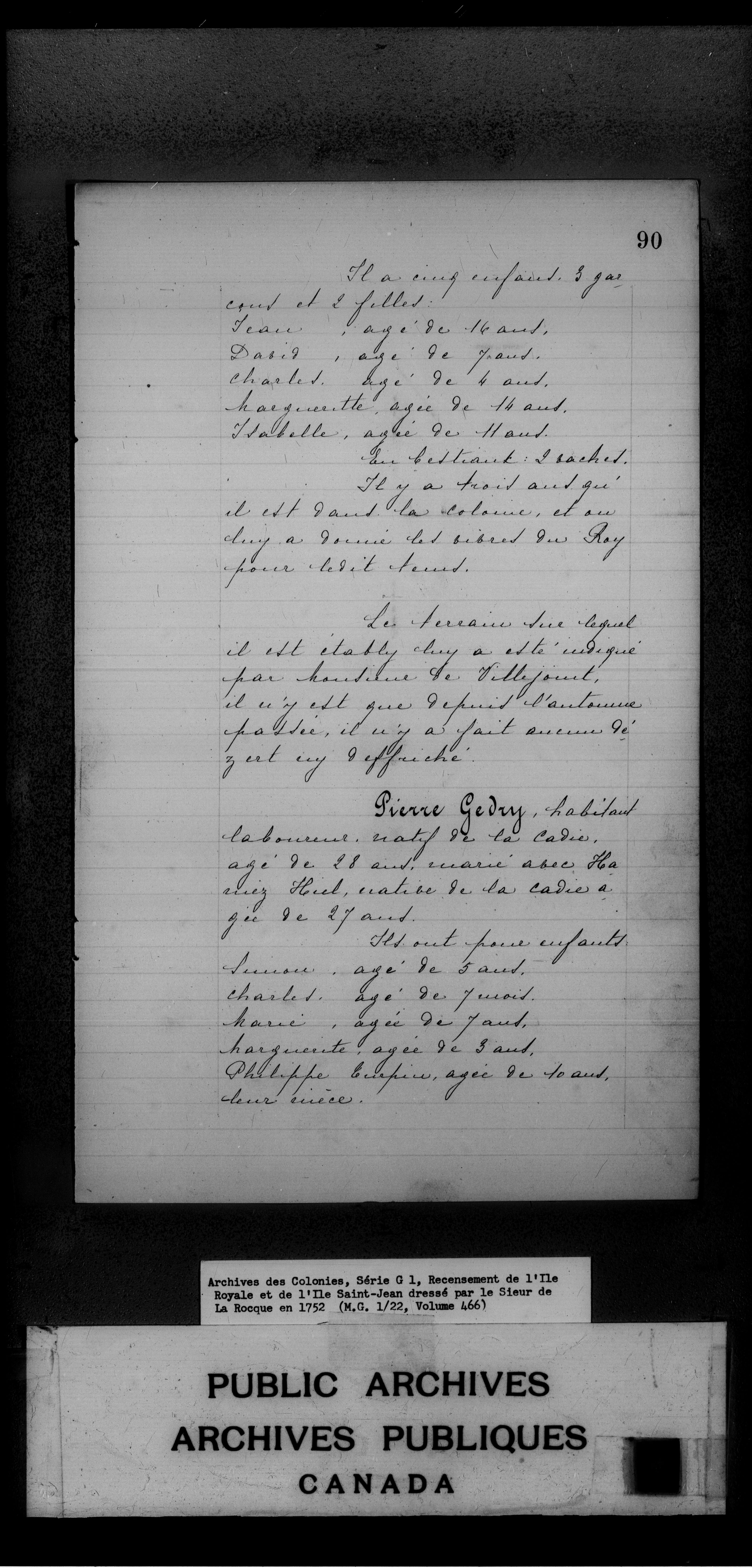Archives des Colonies : Recensement de l'Île Royal et de l'Île Saint-Jean, Série G1 - 4582