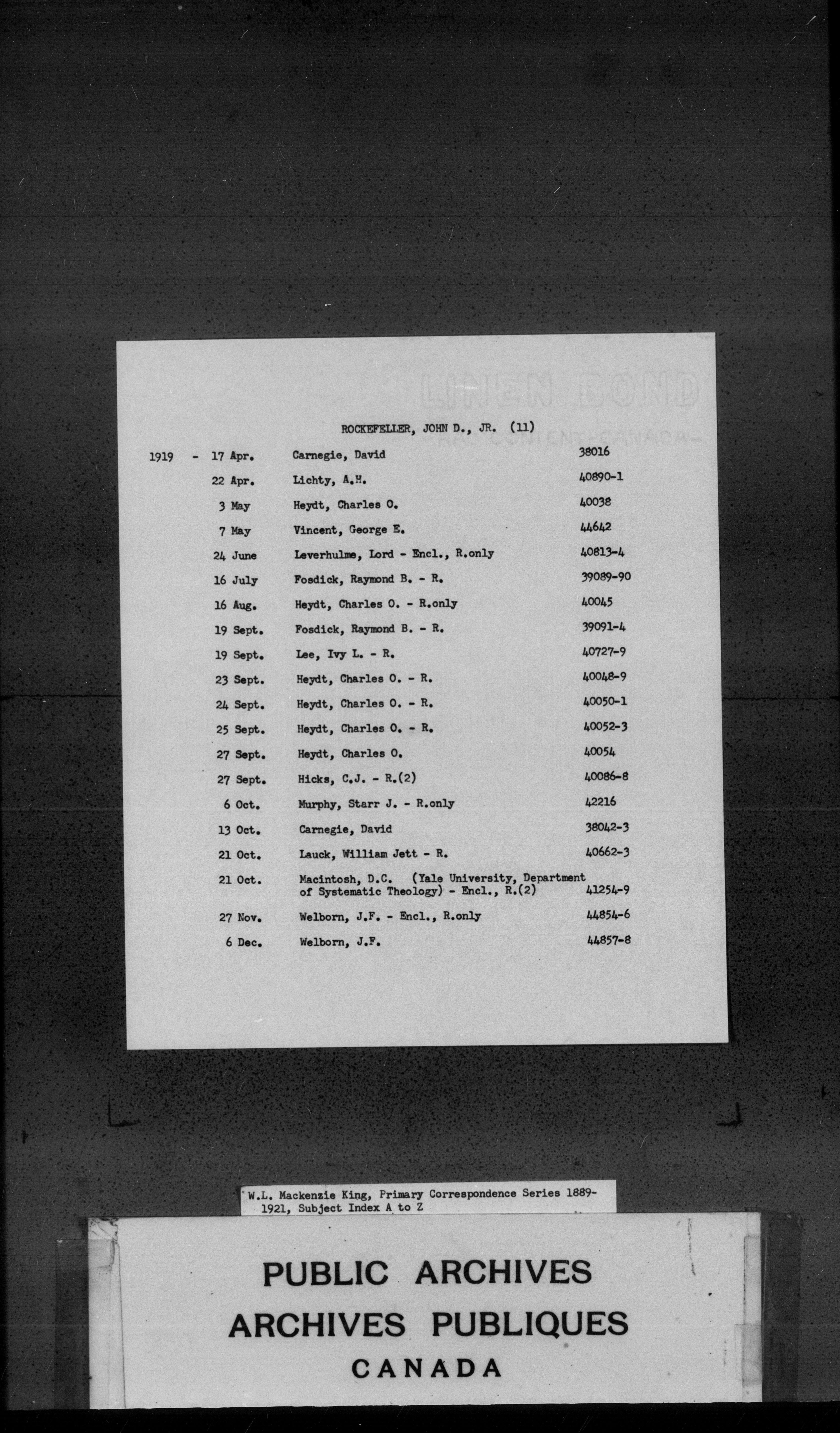 William Lyon Mackenzie King : Primary series correspondence (J1) - 4593