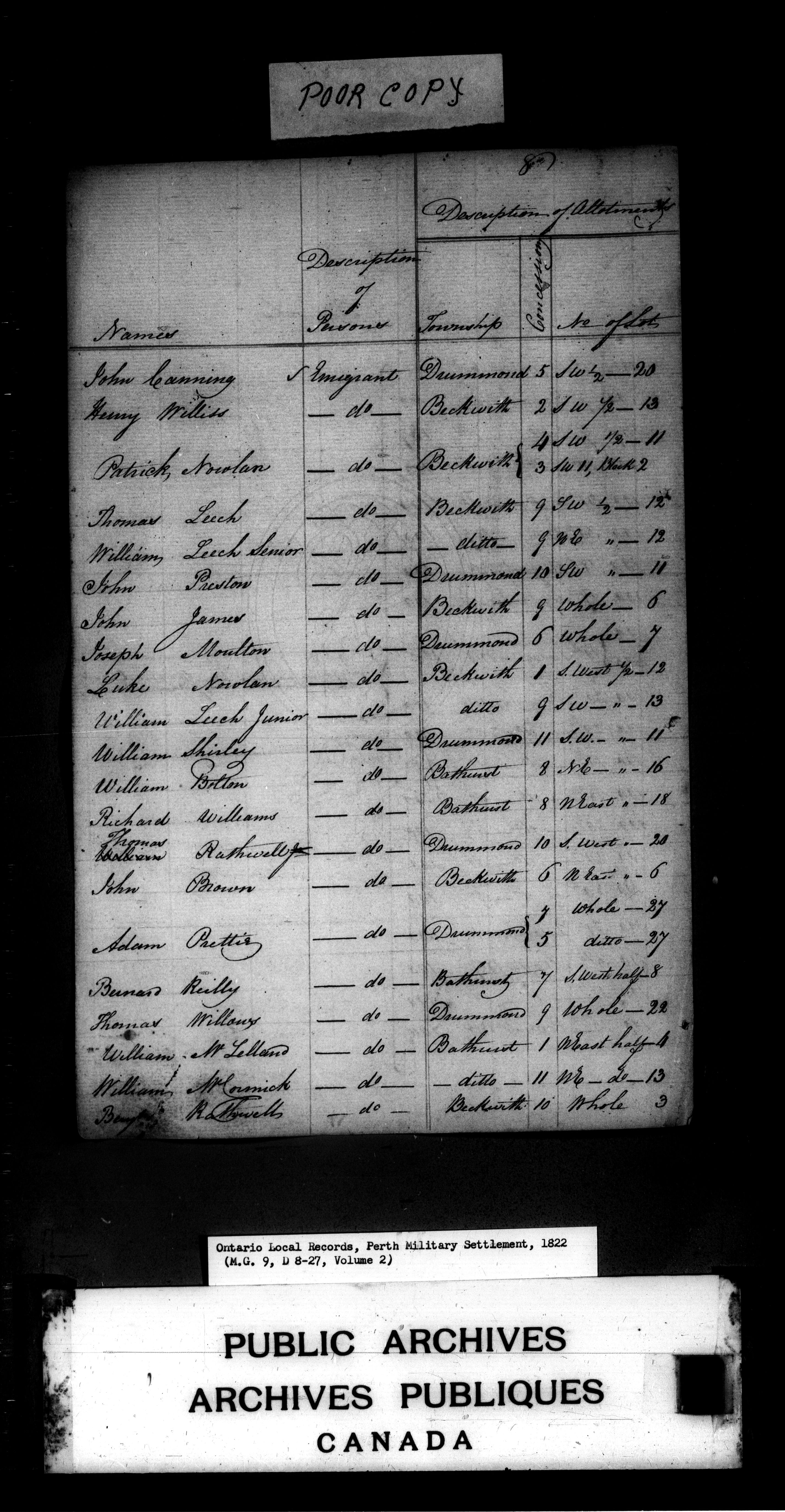 Ontario Local Records : Perth Military Settlement, 1816-1822 - 4651
