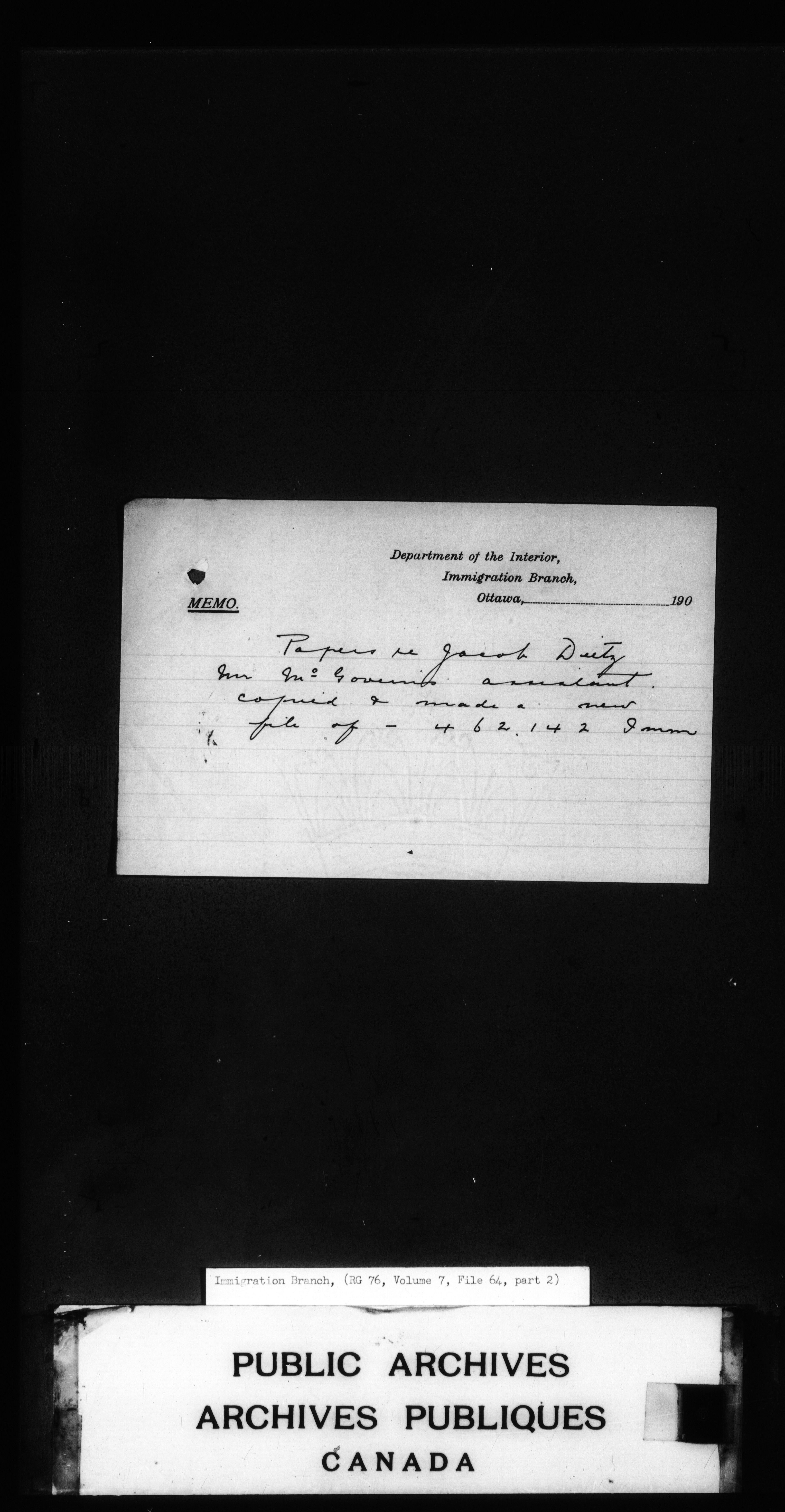 Subject, policy and case files in the First Central Registry series of the Immigration Program, 1892-1950 - 4663