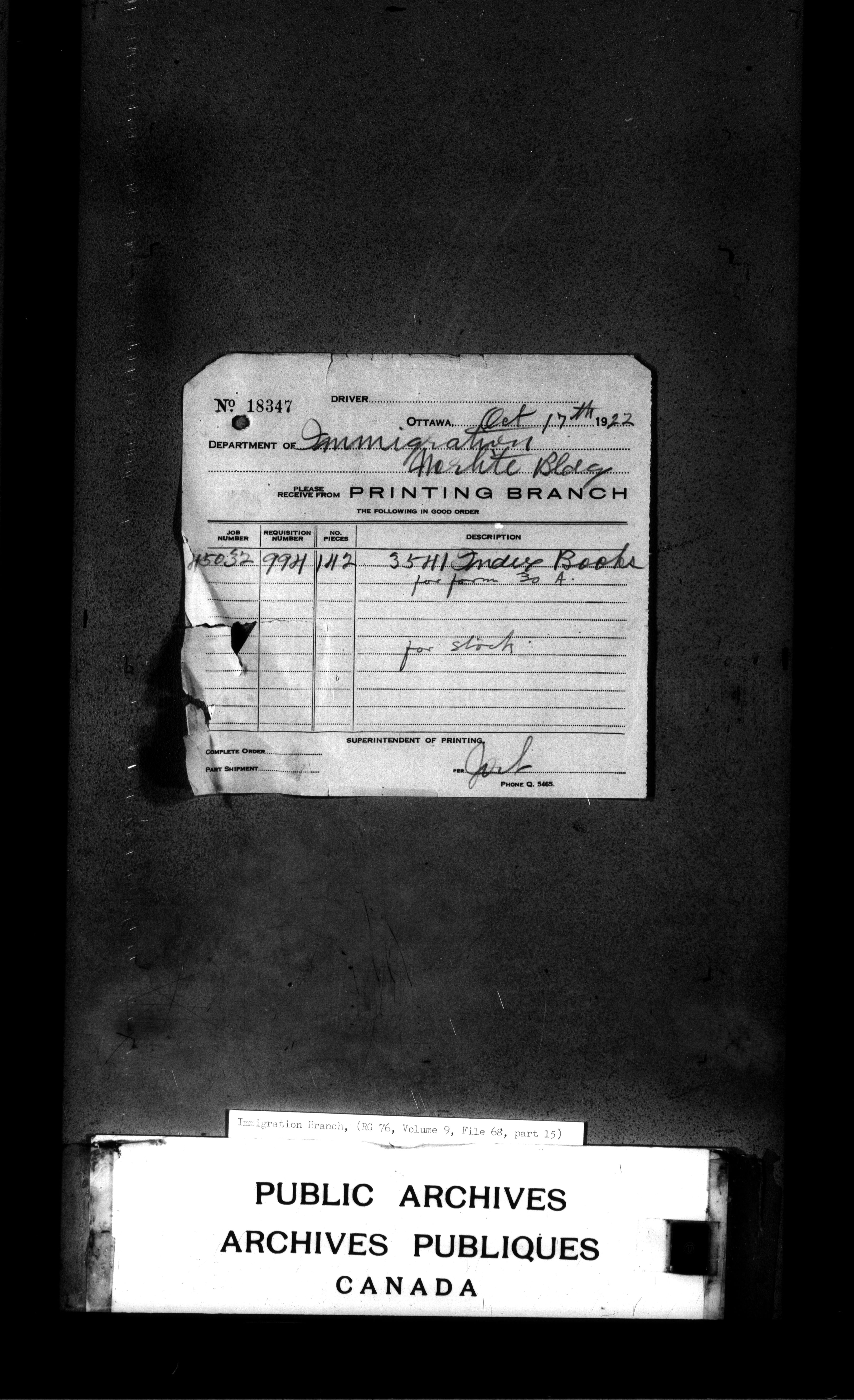 Subject, policy and case files in the First Central Registry series of the Immigration Program, 1892-1950 - 4665