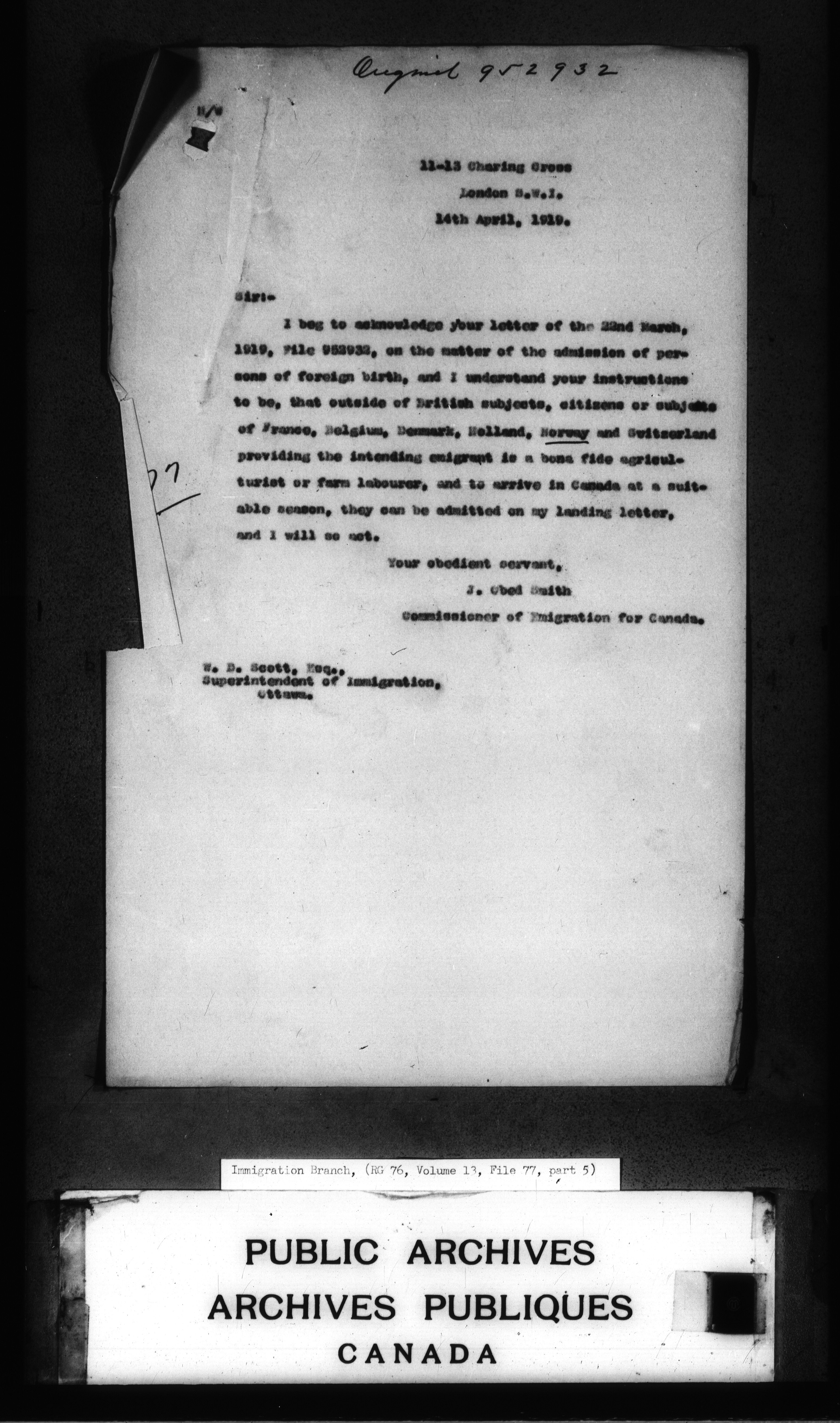 Subject, policy and case files in the First Central Registry series of the Immigration Program, 1892-1950 - 4670