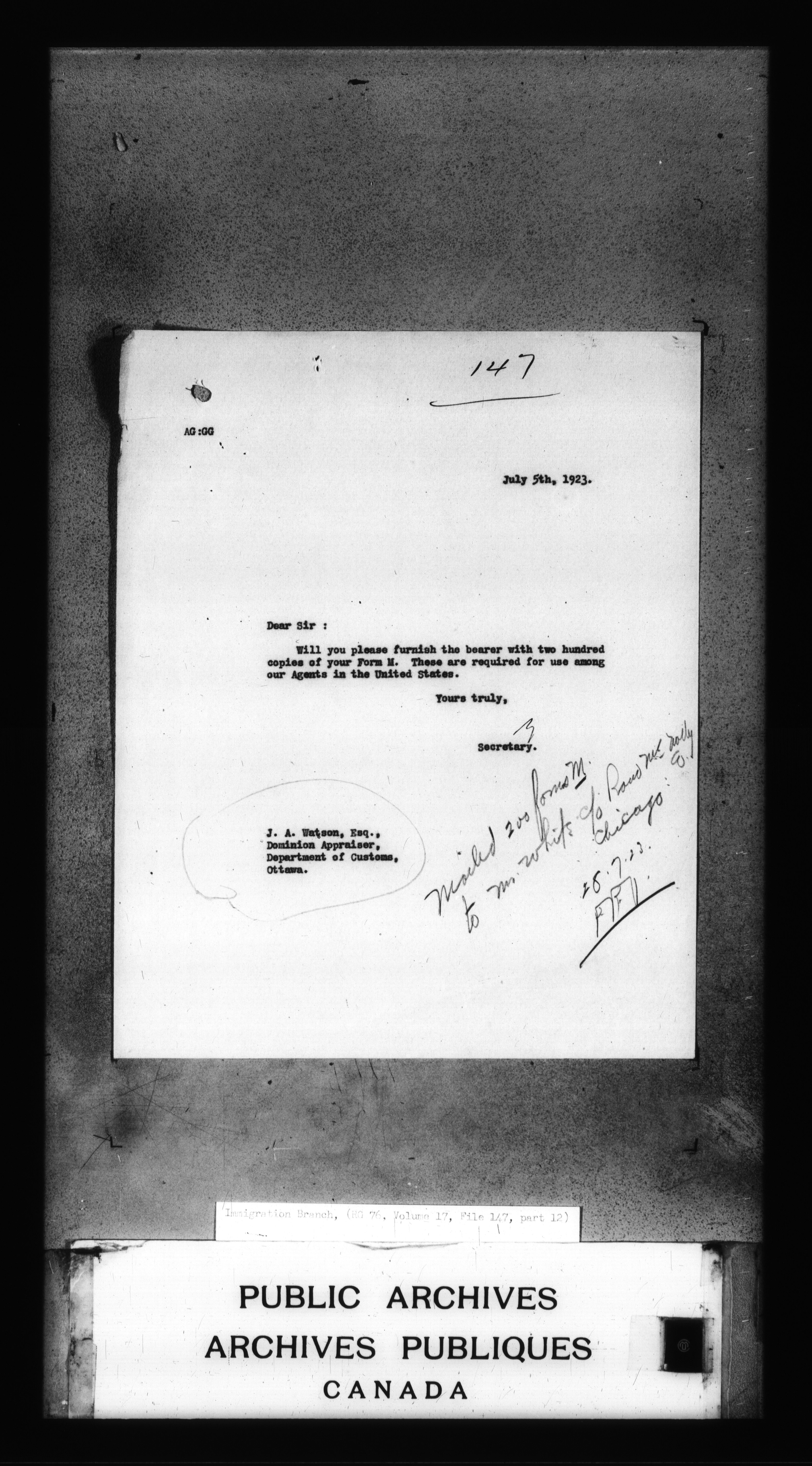 Subject, policy and case files in the First Central Registry series of the Immigration Program, 1892-1950 - 4674