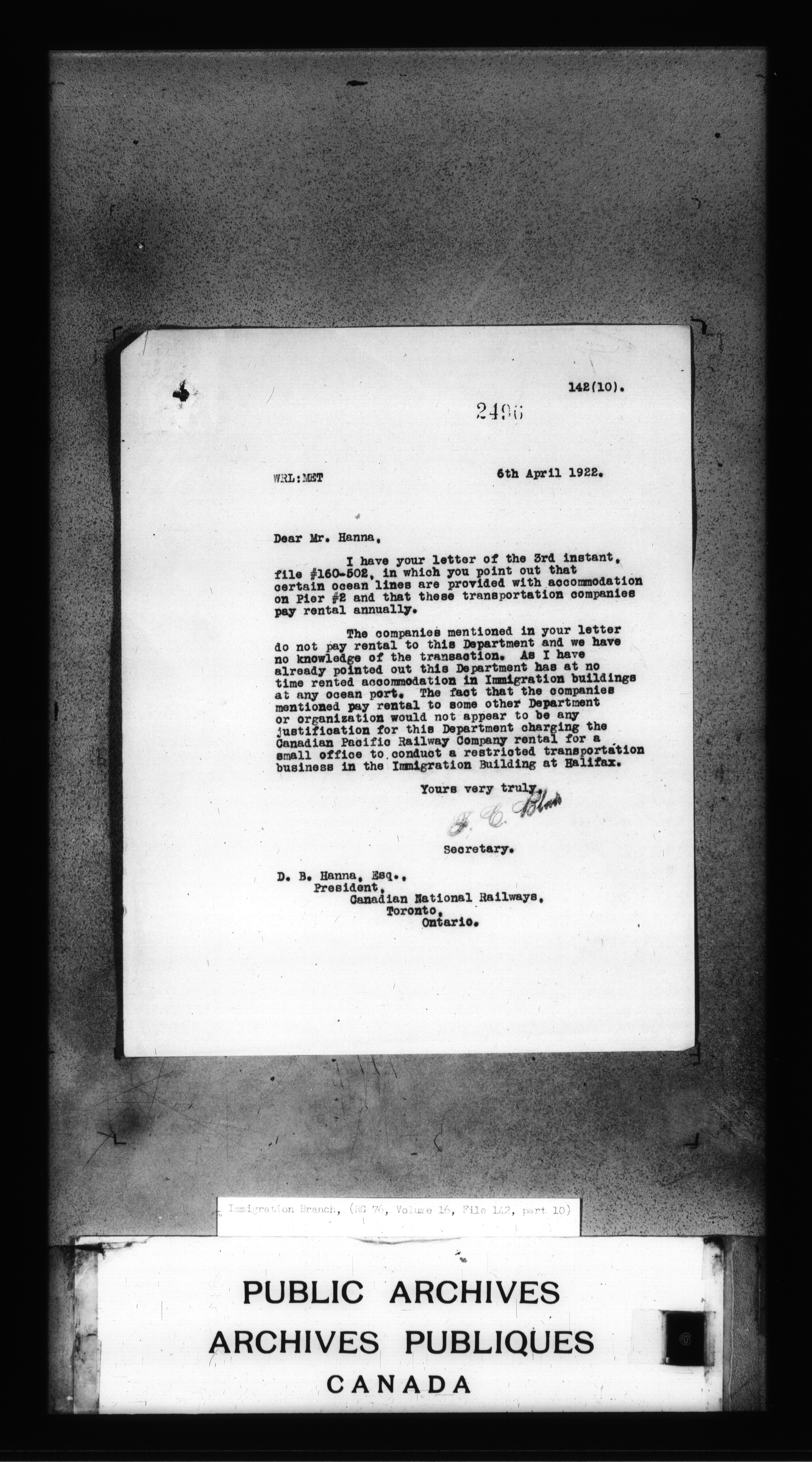 Subject, policy and case files in the First Central Registry series of the Immigration Program, 1892-1950 - 4674