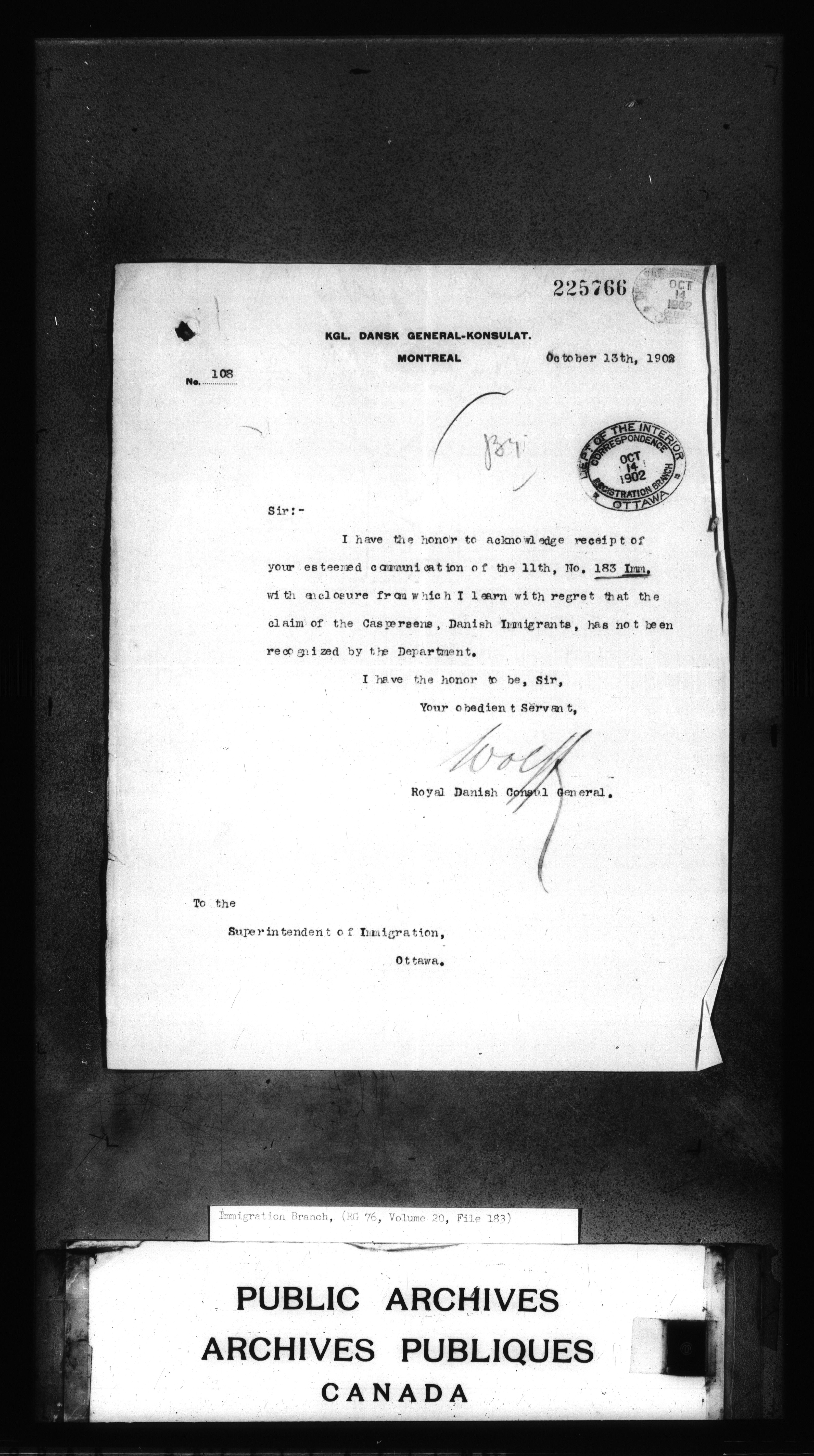 Subject, policy and case files in the First Central Registry series of the Immigration Program, 1892-1950 - 4678