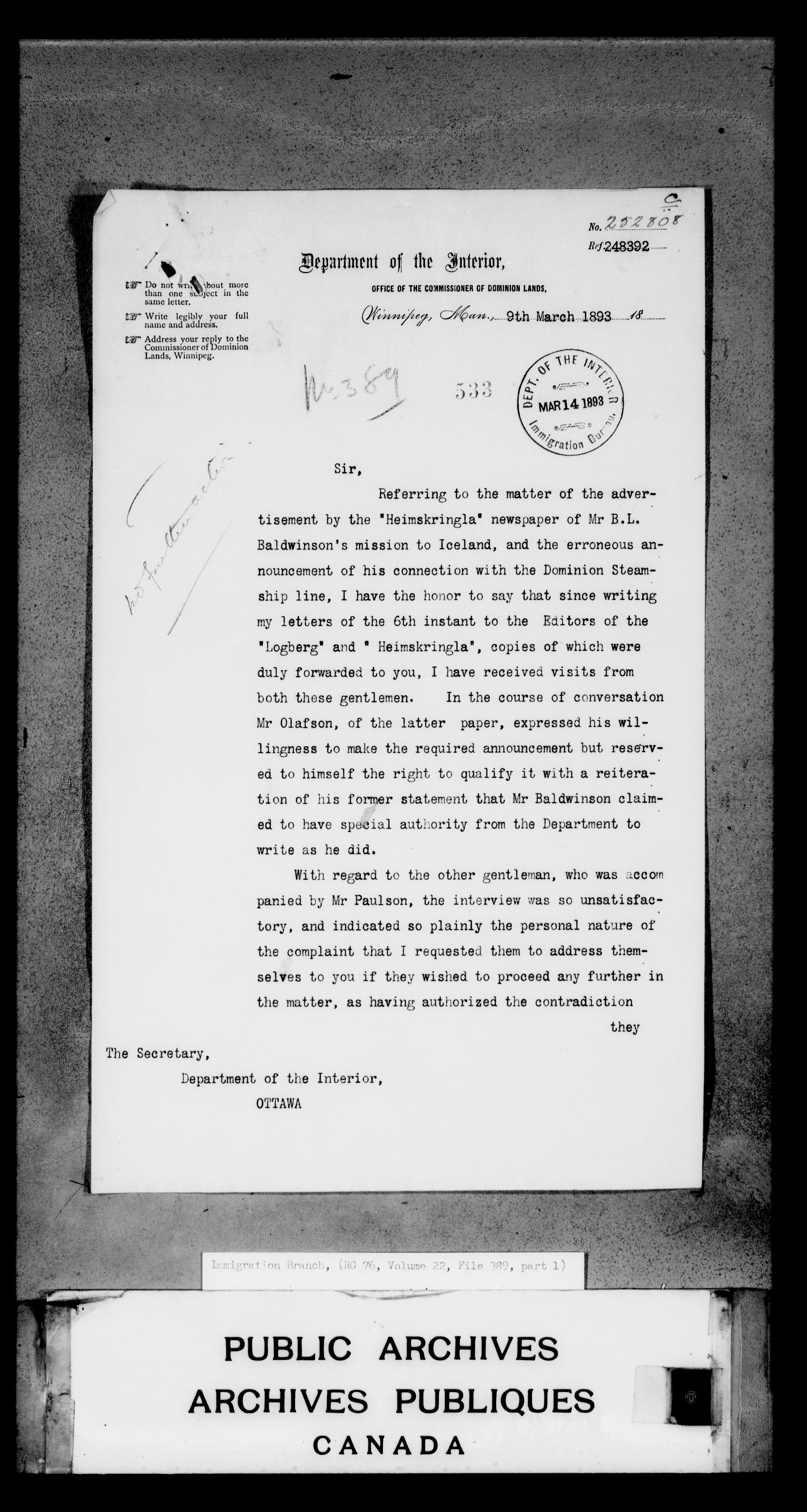 Subject, policy and case files in the First Central Registry series of the Immigration Program, 1892-1950 - 4679