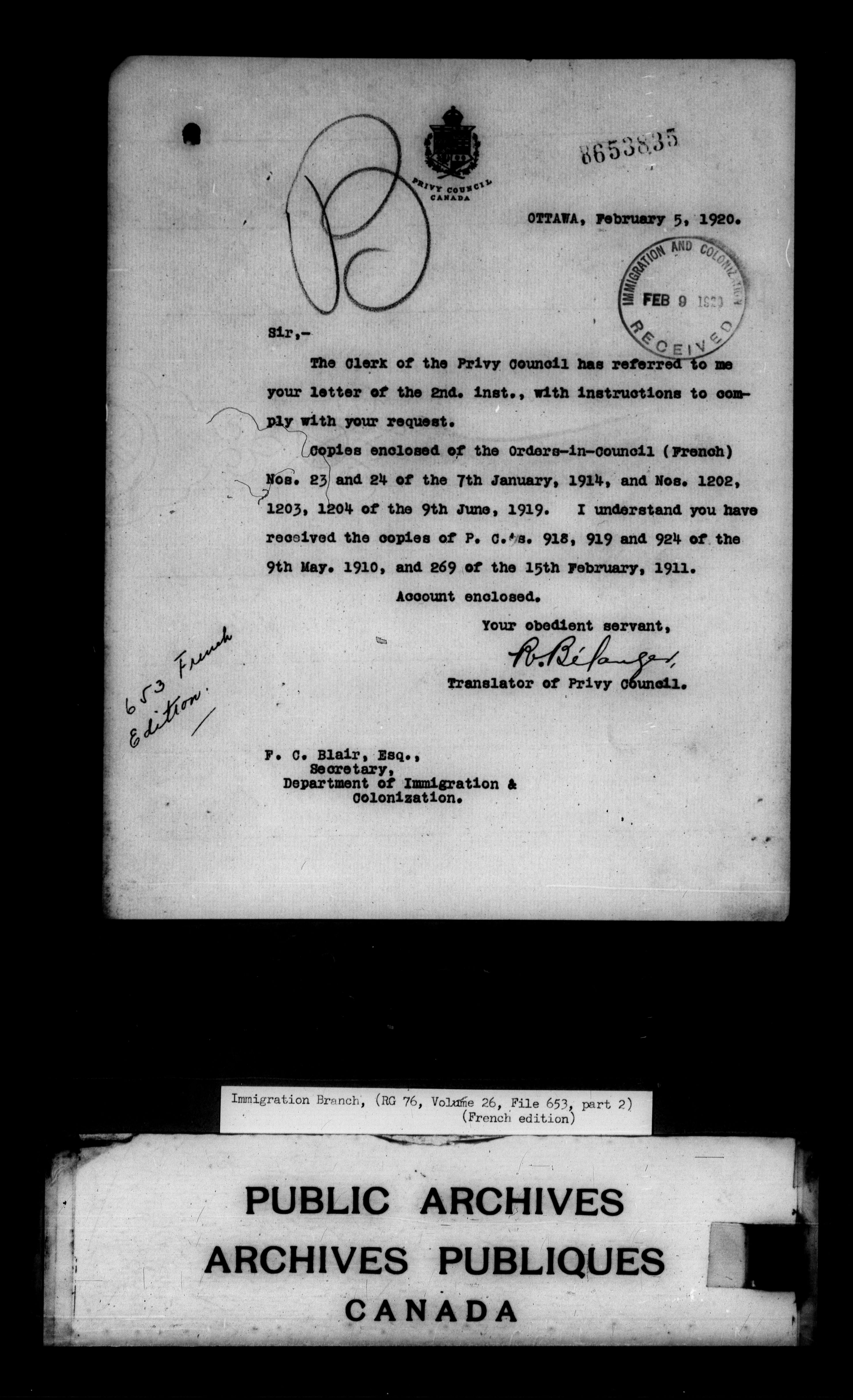Subject, policy and case files in the First Central Registry series of the Immigration Program, 1892-1950 - 4683