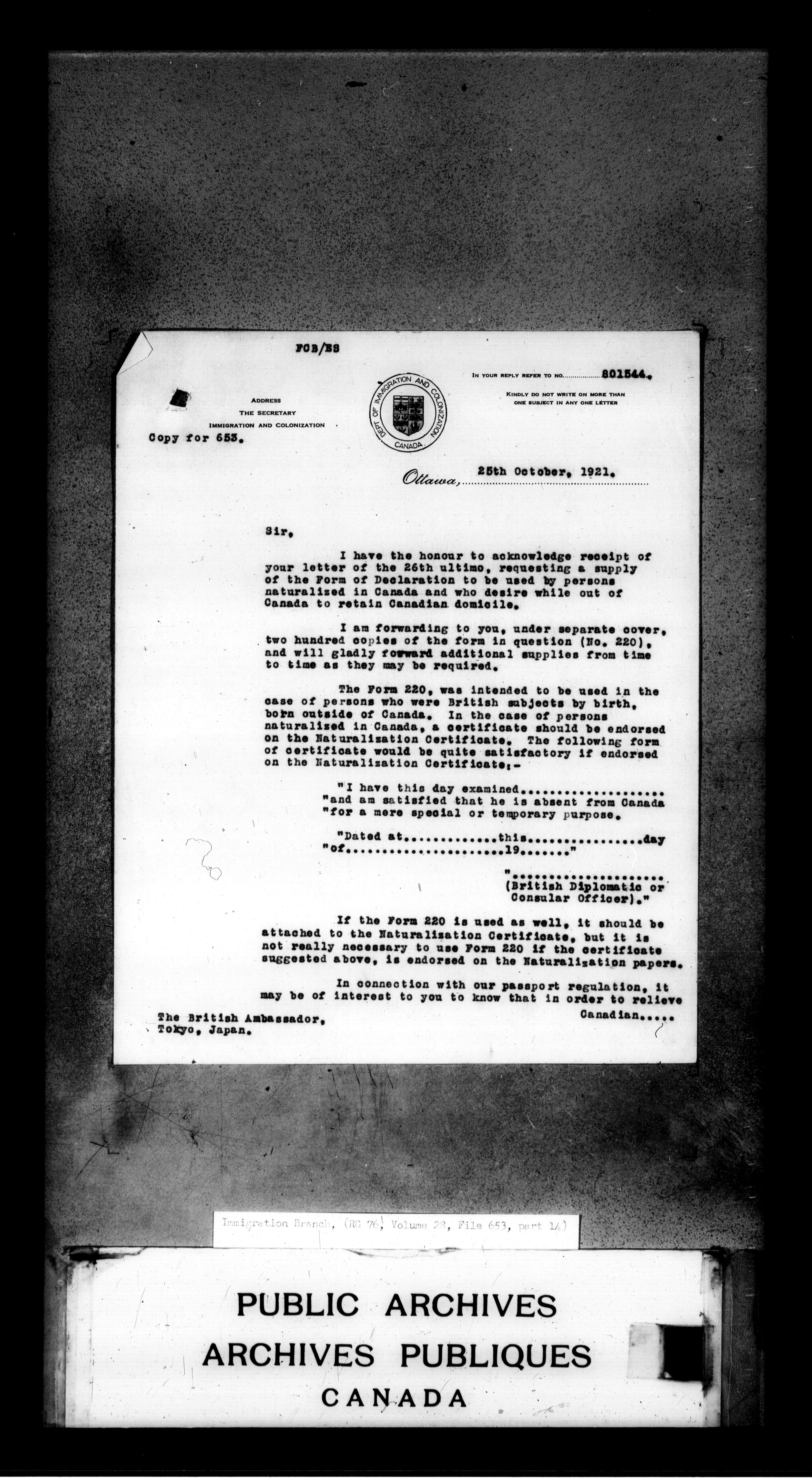 Subject, policy and case files in the First Central Registry series of the Immigration Program, 1892-1950 - 4686