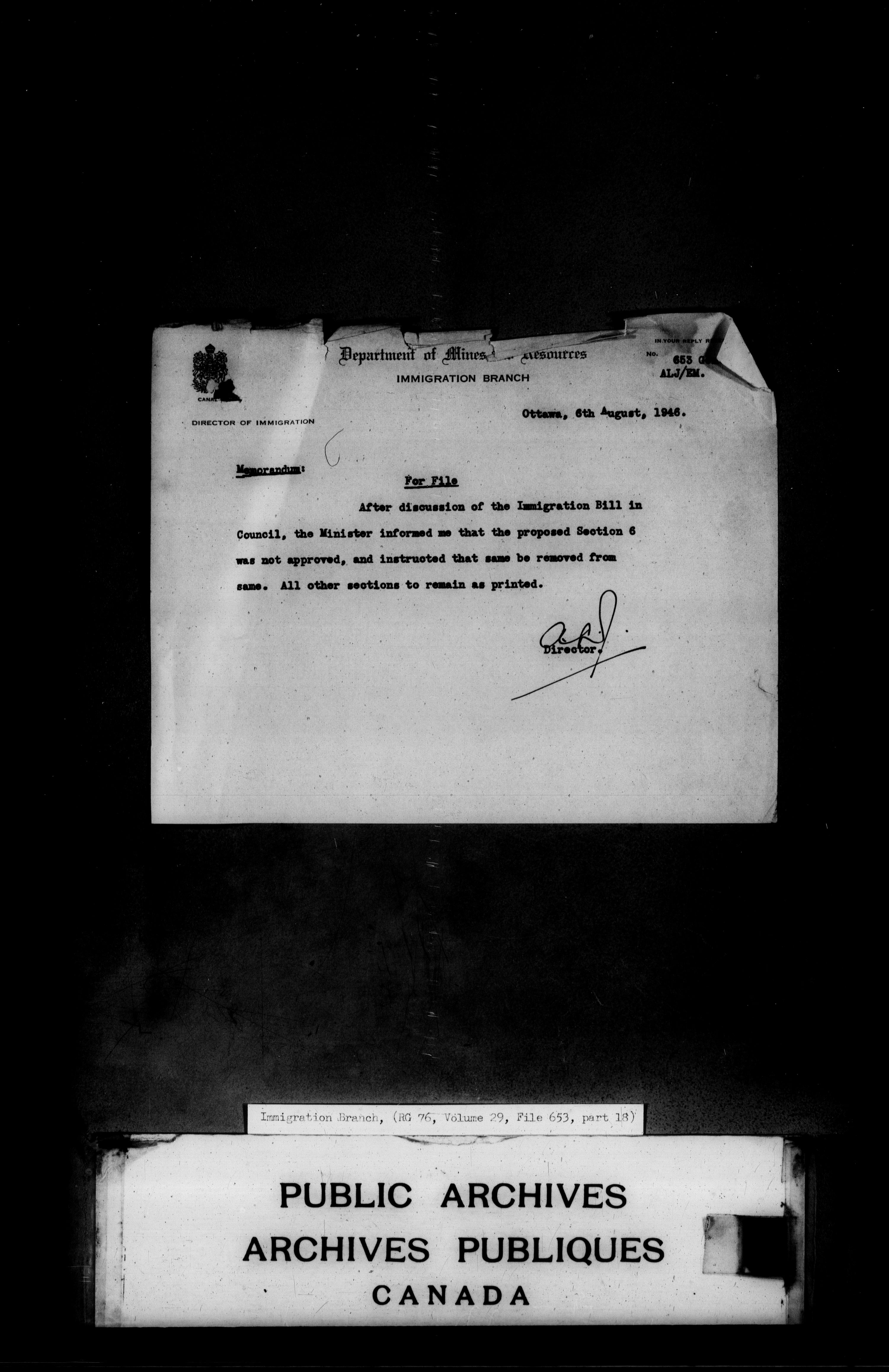 Subject, policy and case files in the First Central Registry series of the Immigration Program, 1892-1950 - 4688