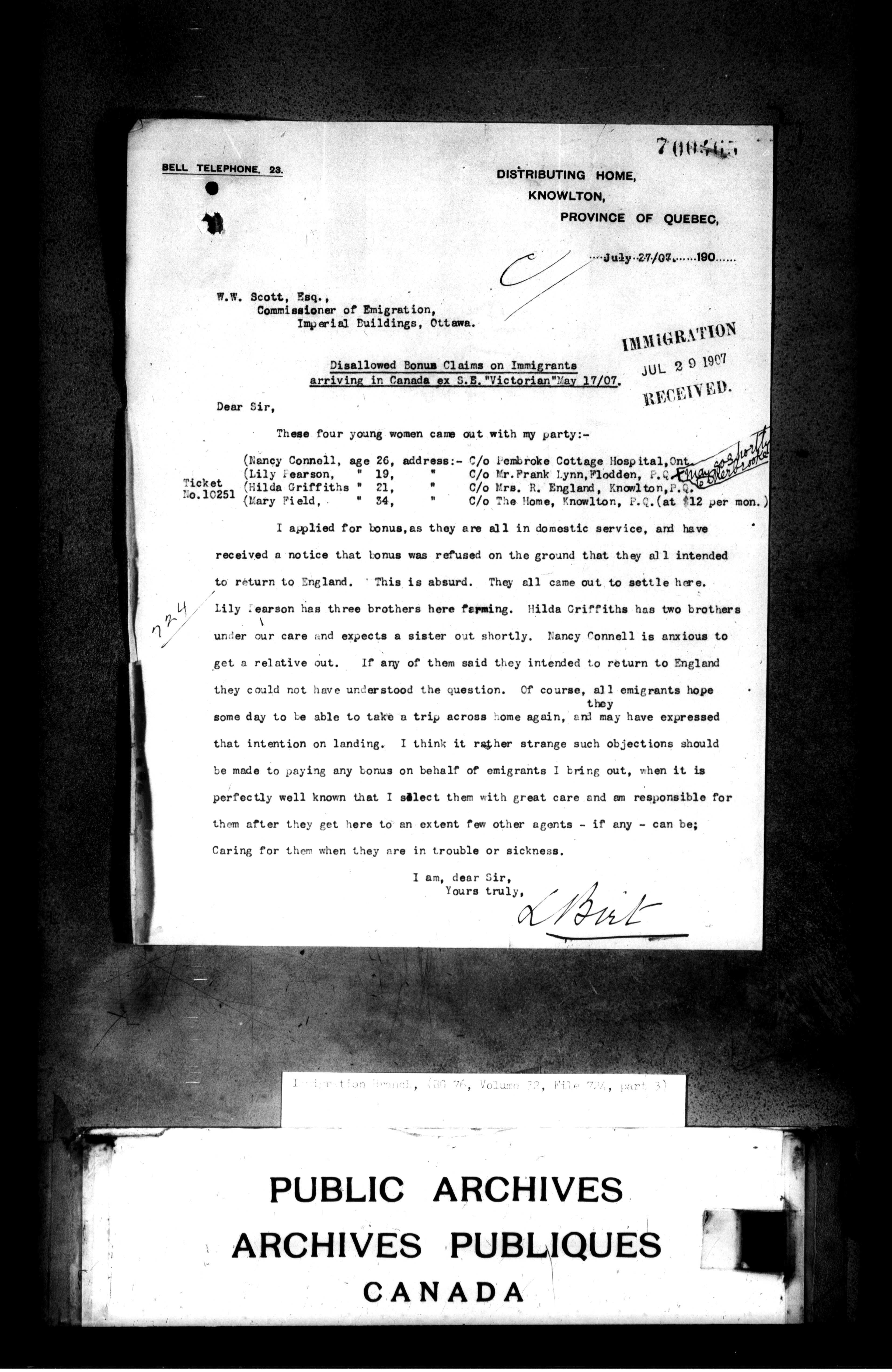 Subject, policy and case files in the First Central Registry series of the Immigration Program, 1892-1950 - 4690