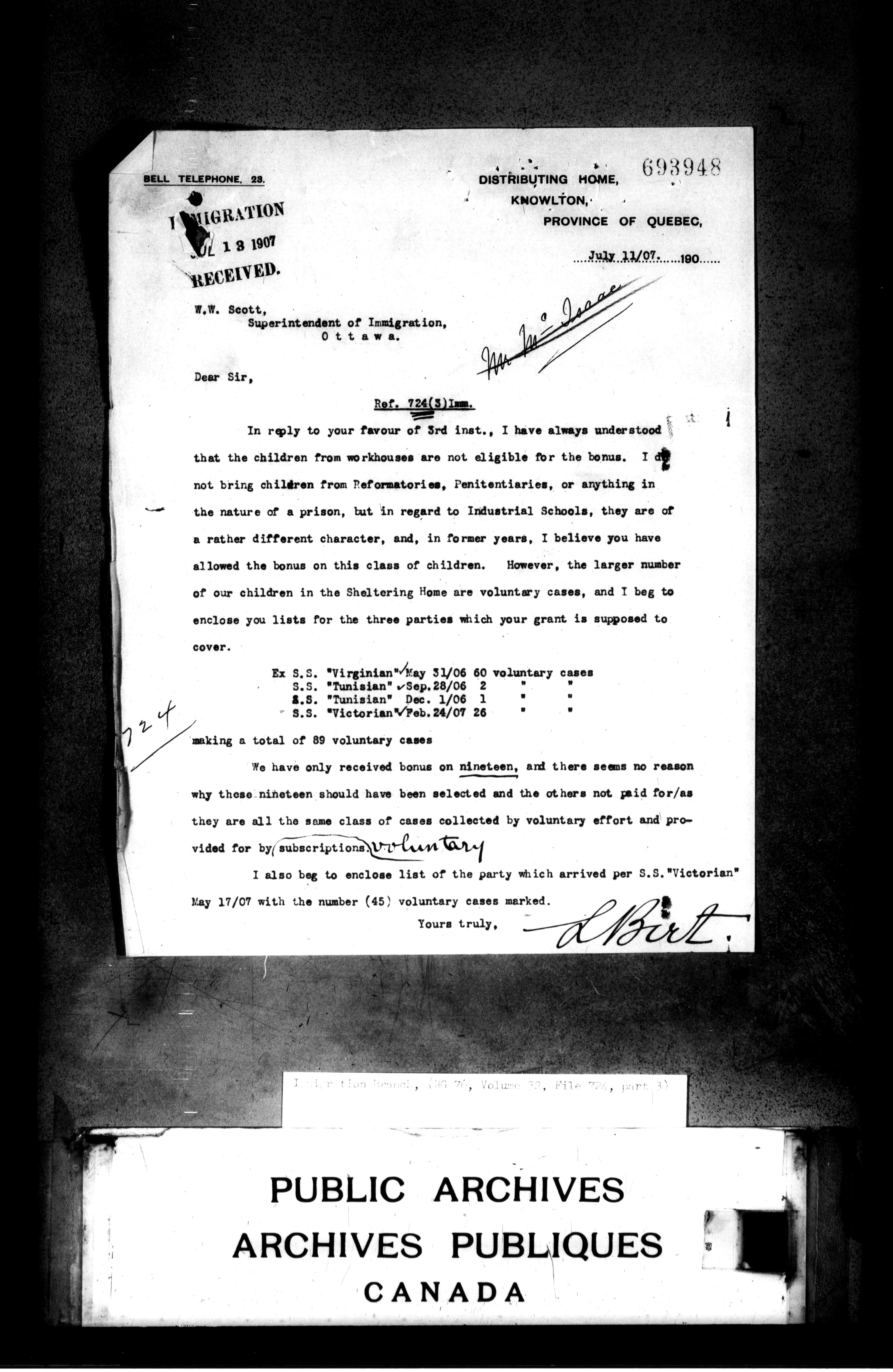 Subject, policy and case files in the First Central Registry series of the Immigration Program, 1892-1950 - 4690