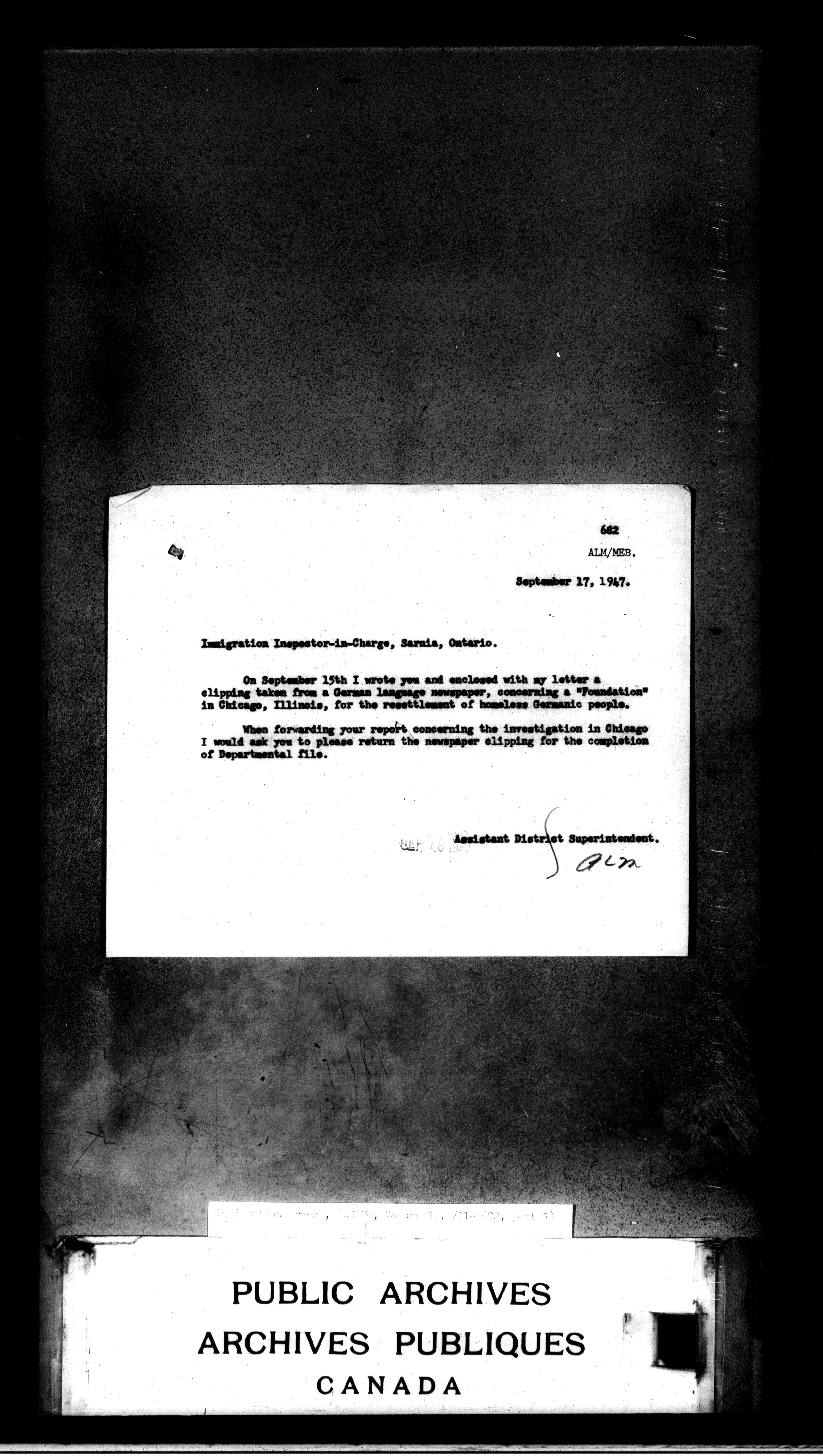 Subject, policy and case files in the First Central Registry series of the Immigration Program, 1892-1950 - 4690
