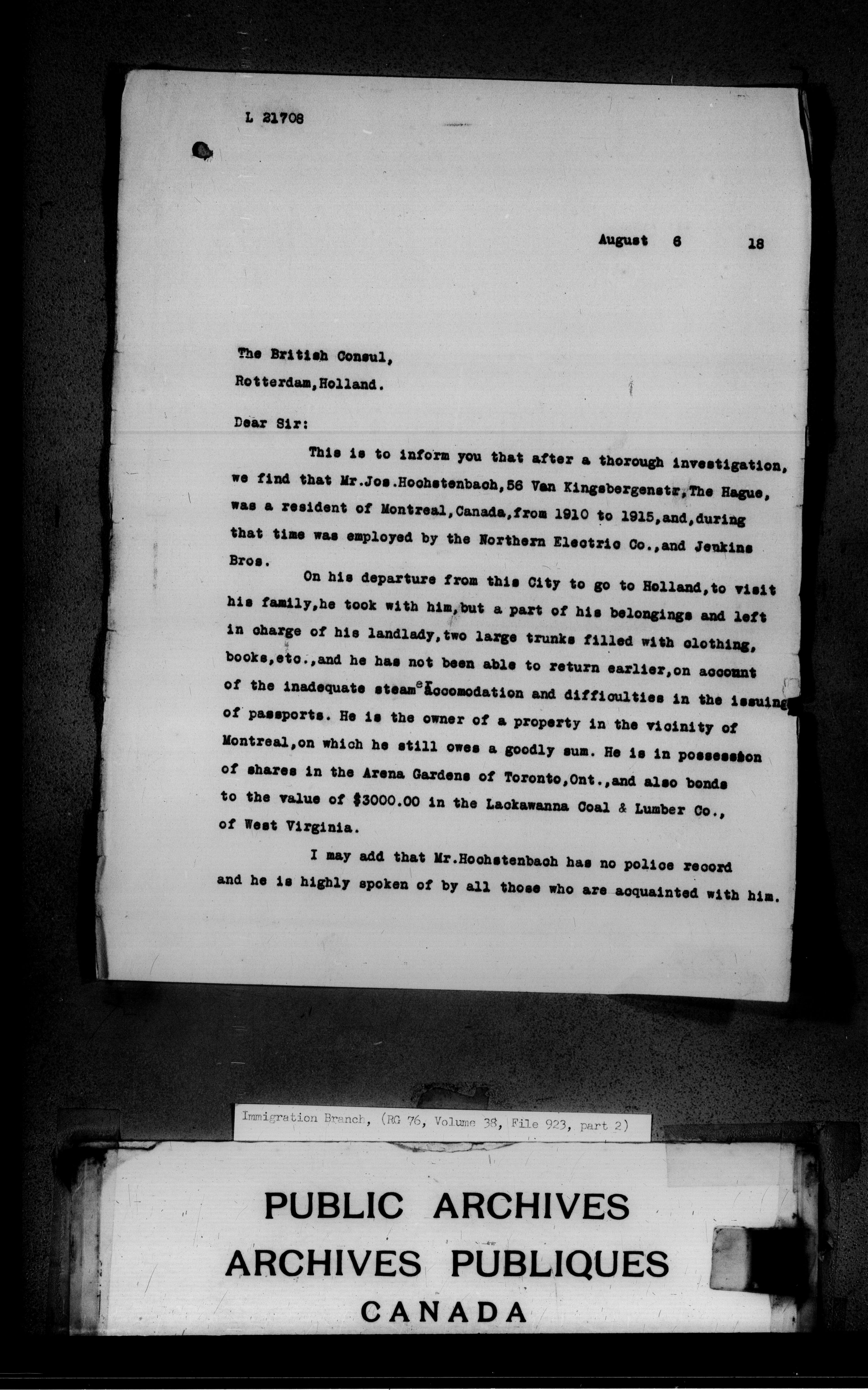 Subject, policy and case files in the First Central Registry series of the Immigration Program, 1892-1950 - 4698
