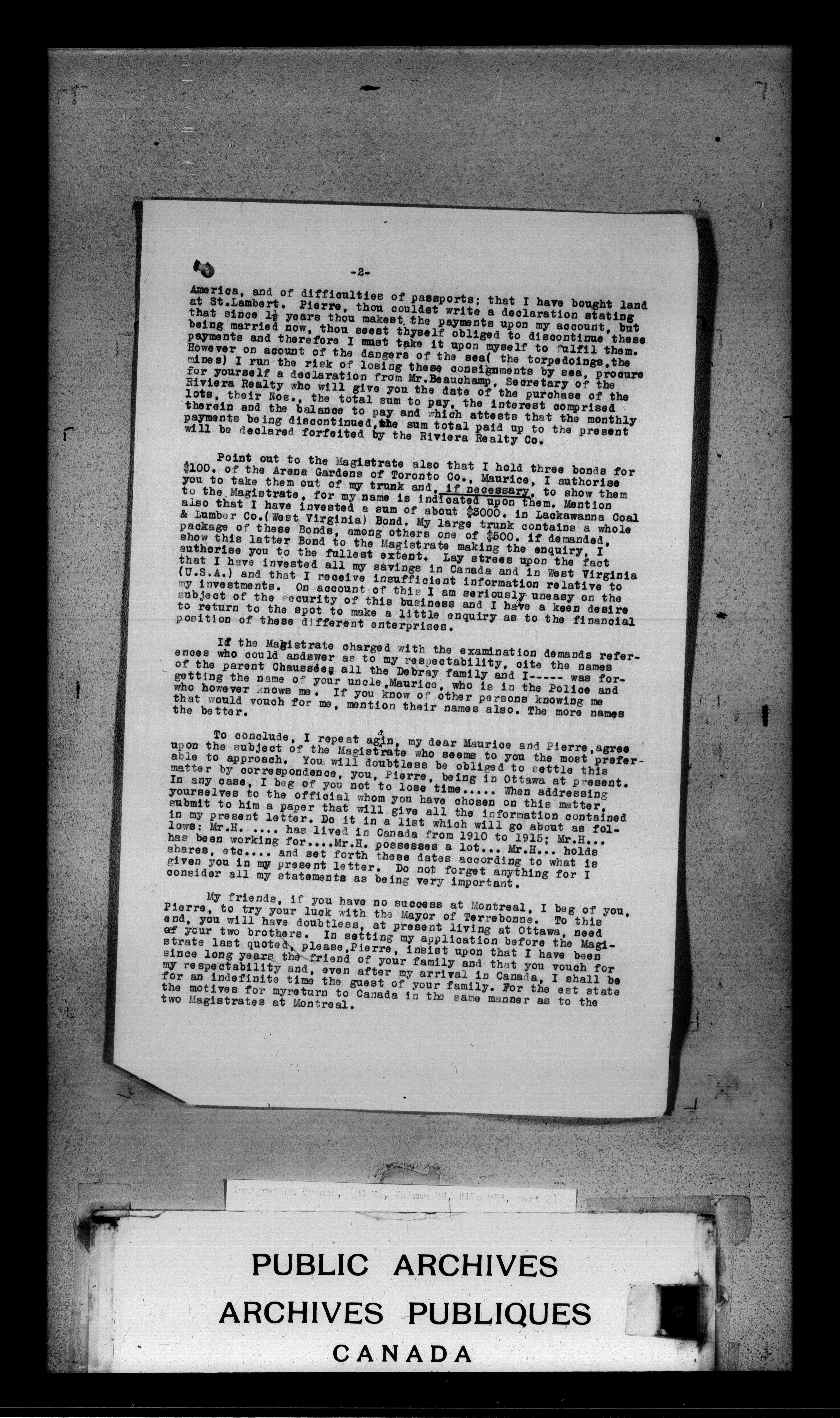 Subject, policy and case files in the First Central Registry series of the Immigration Program, 1892-1950 - 4698