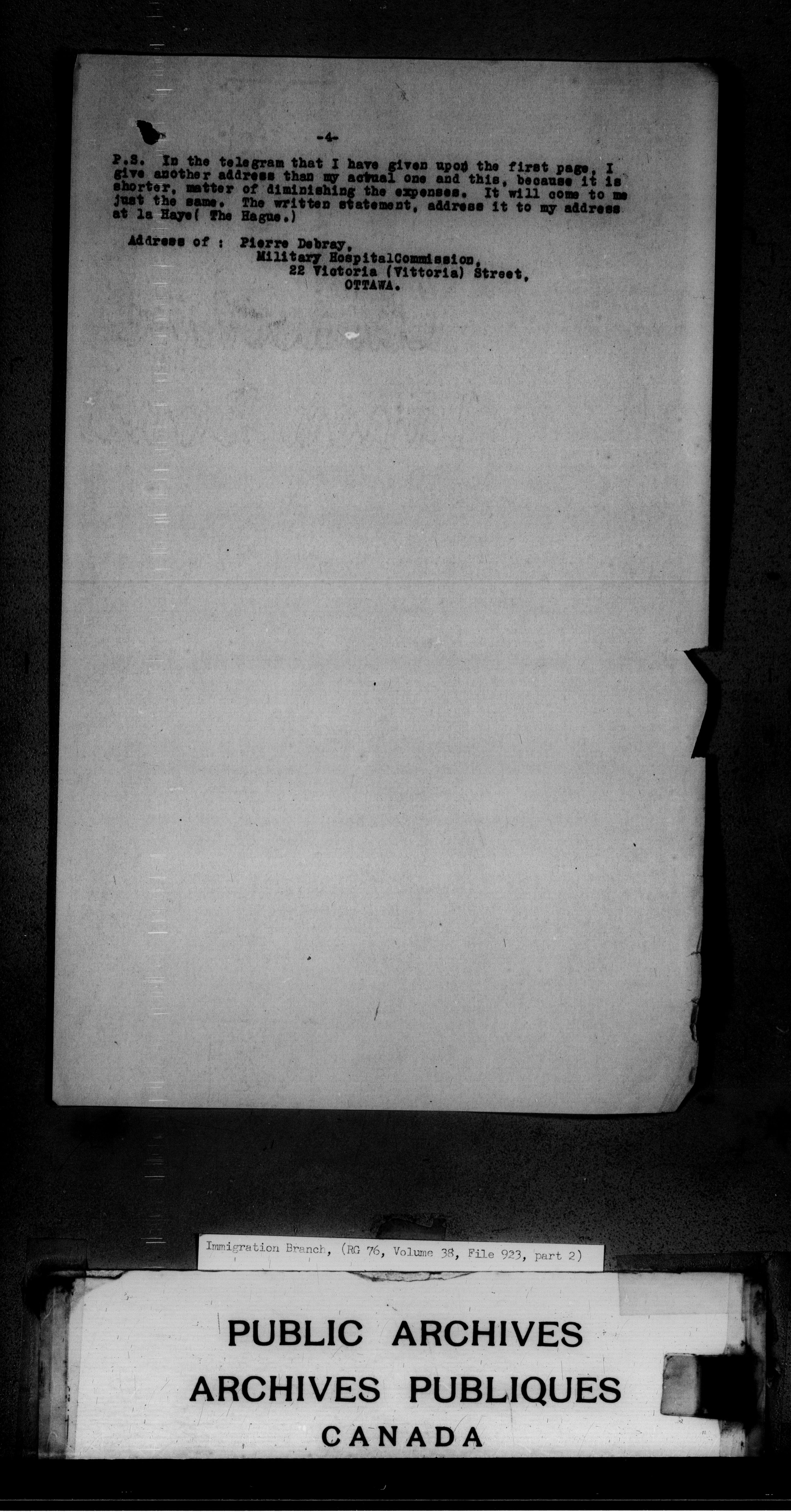 Subject, policy and case files in the First Central Registry series of the Immigration Program, 1892-1950 - 4698