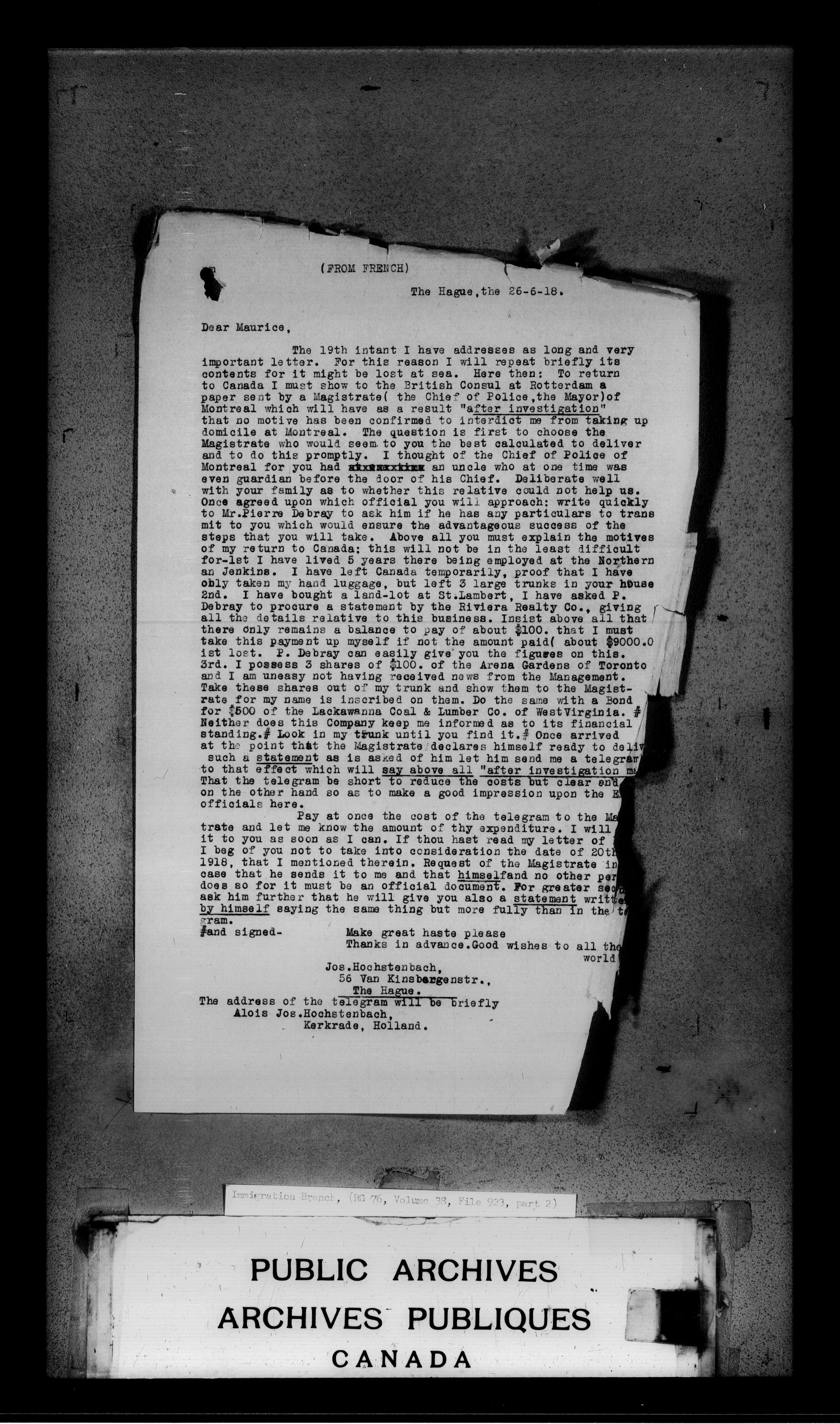Subject, policy and case files in the First Central Registry series of the Immigration Program, 1892-1950 - 4698