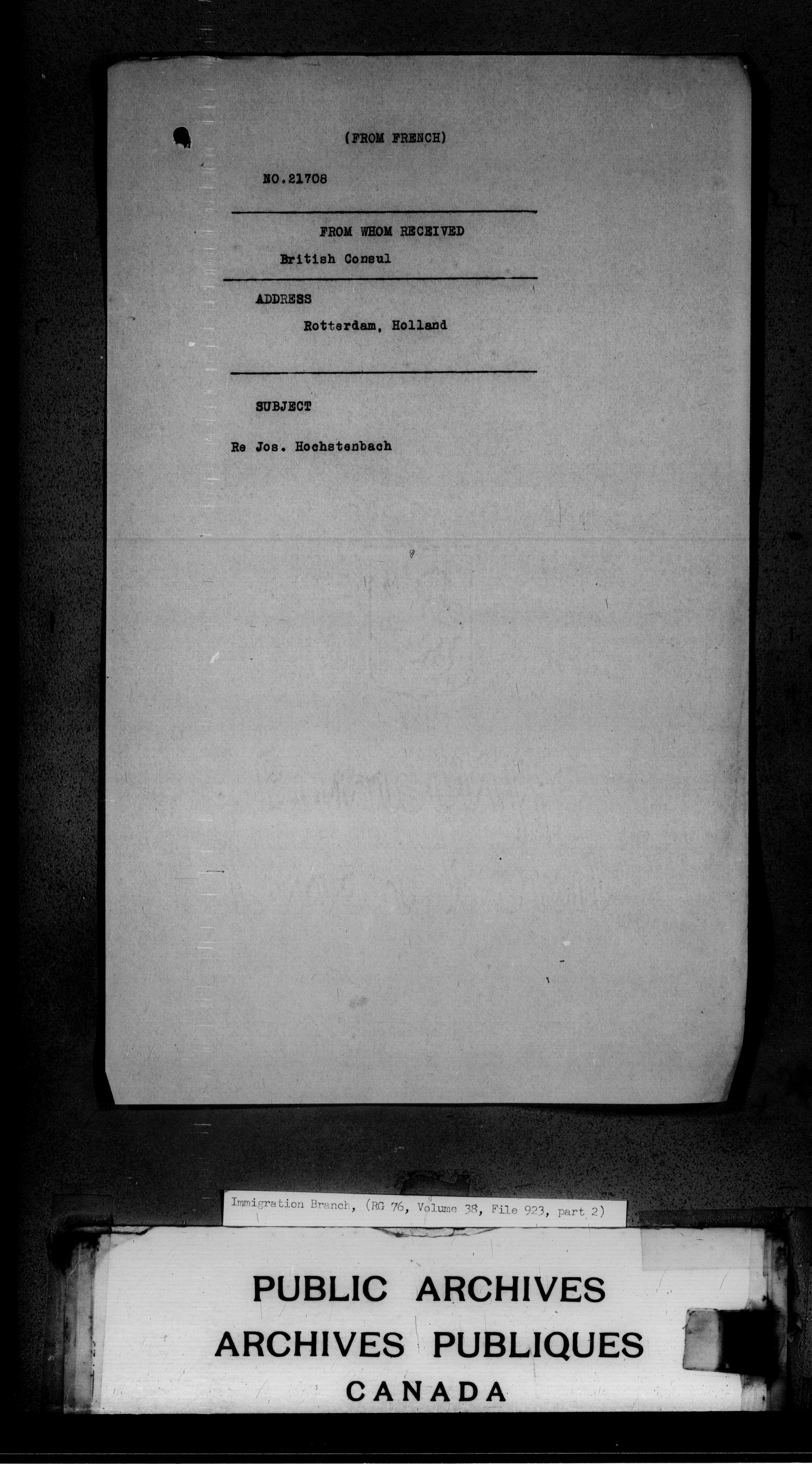 Subject, policy and case files in the First Central Registry series of the Immigration Program, 1892-1950 - 4698