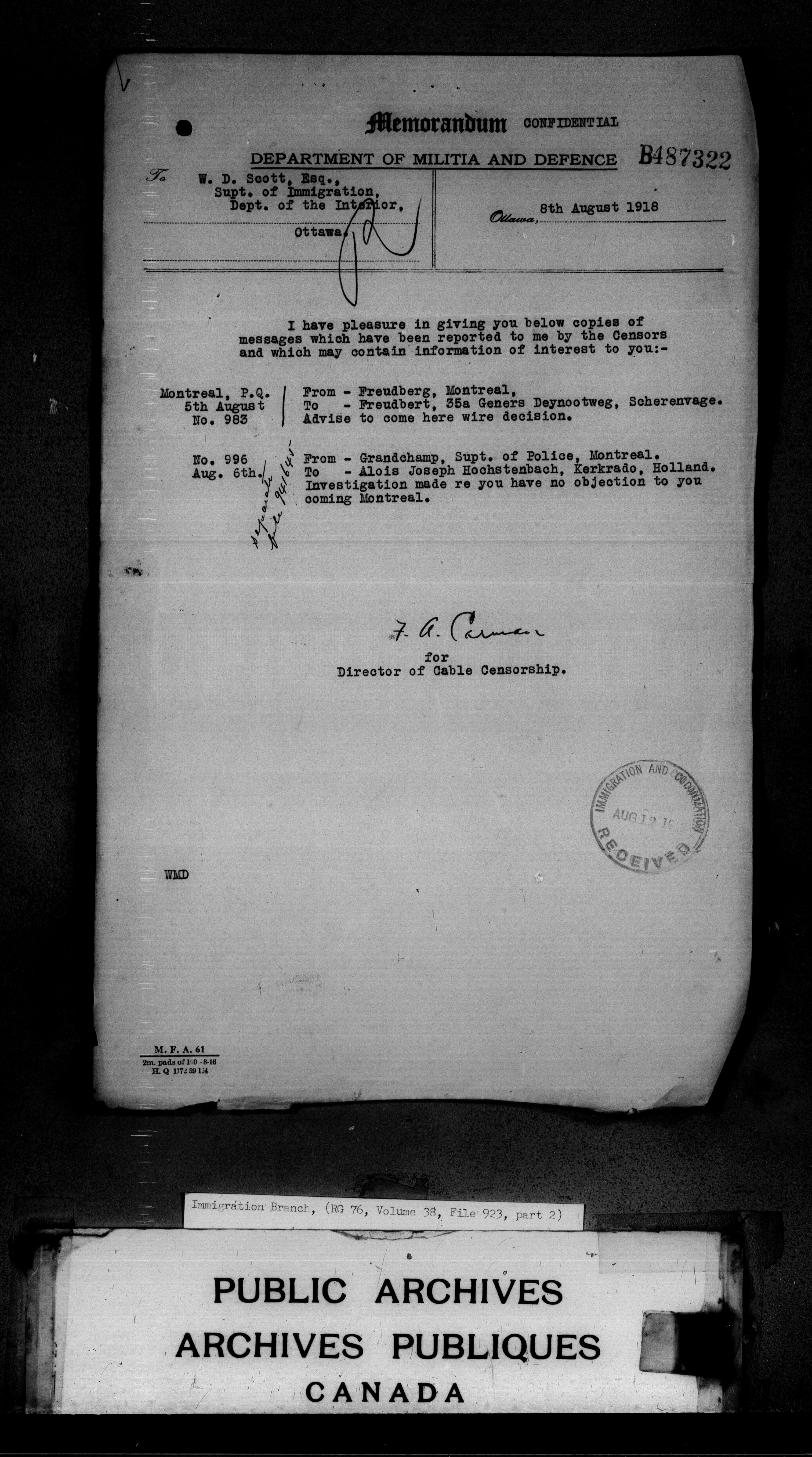Subject, policy and case files in the First Central Registry series of the Immigration Program, 1892-1950 - 4698
