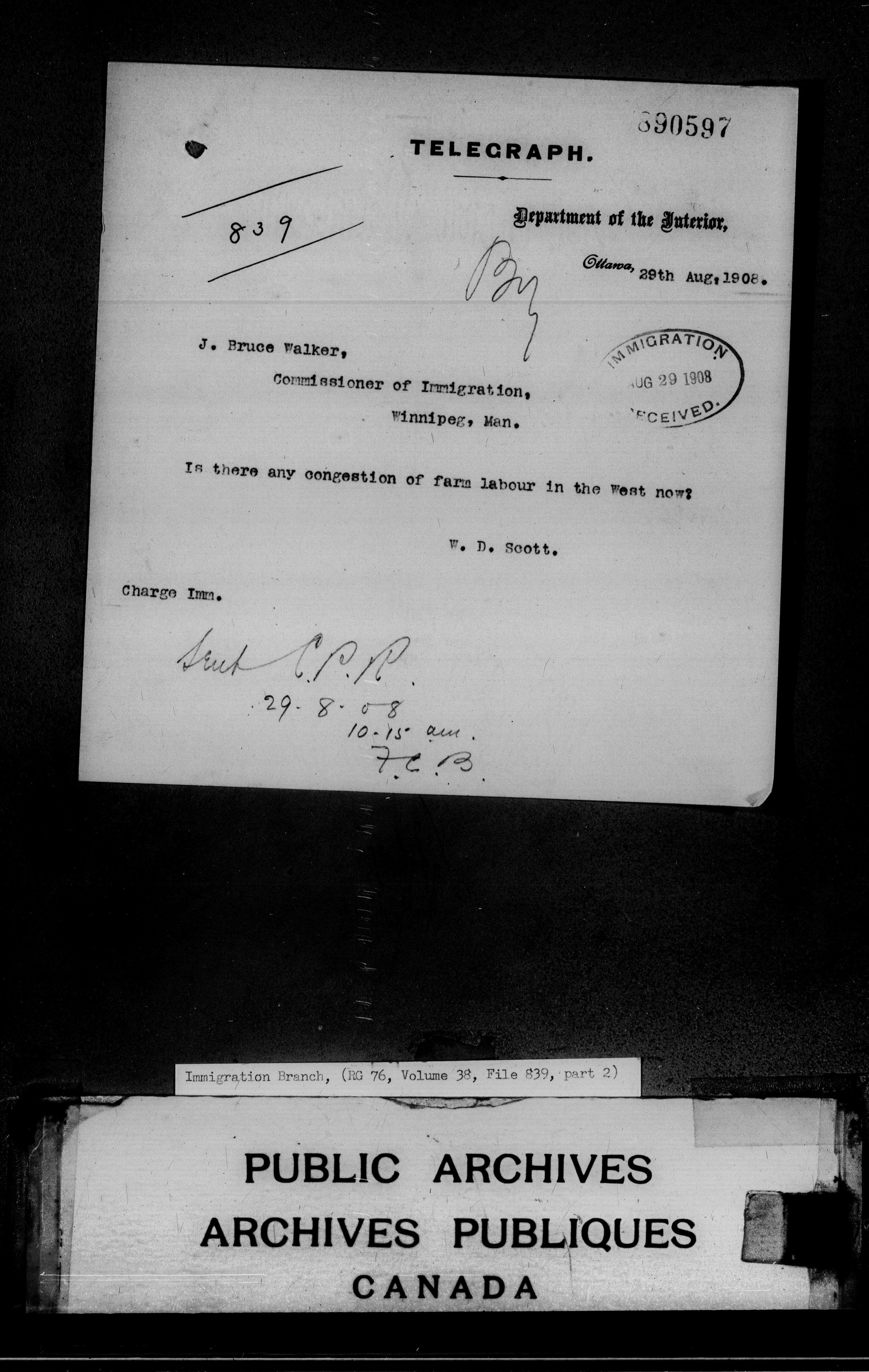Subject, policy and case files in the First Central Registry series of the Immigration Program, 1892-1950 - 4698