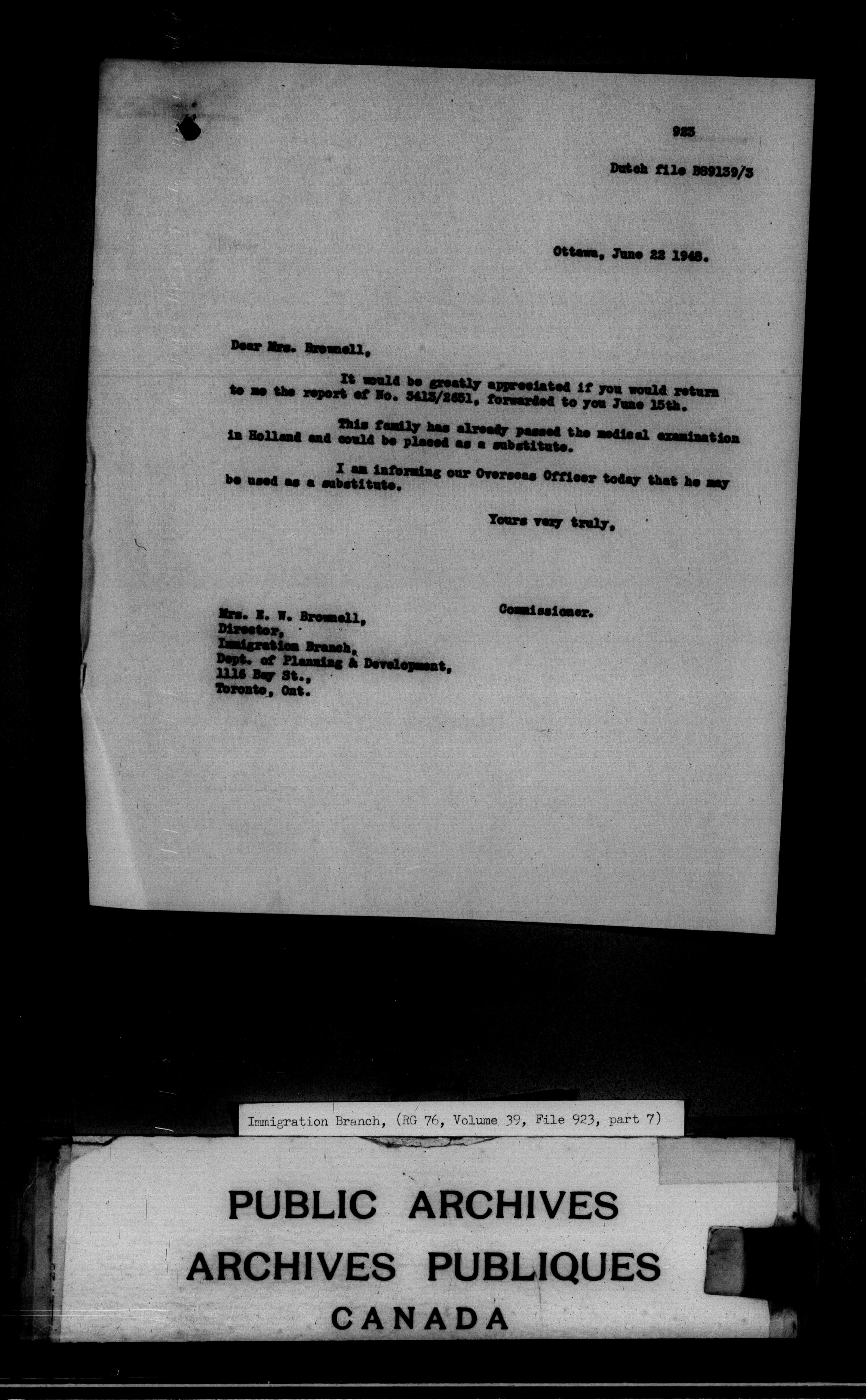 Subject, policy and case files in the First Central Registry series of the Immigration Program, 1892-1950 - 4699