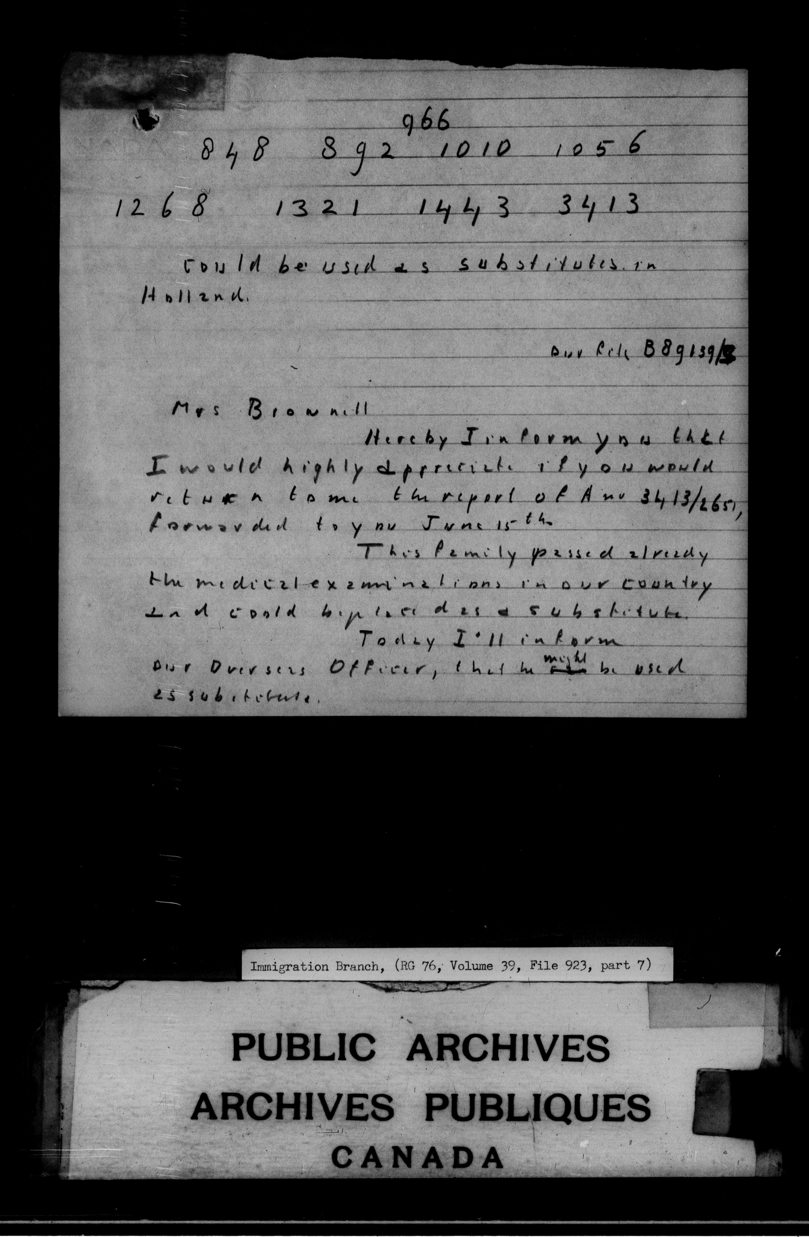 Subject, policy and case files in the First Central Registry series of the Immigration Program, 1892-1950 - 4699