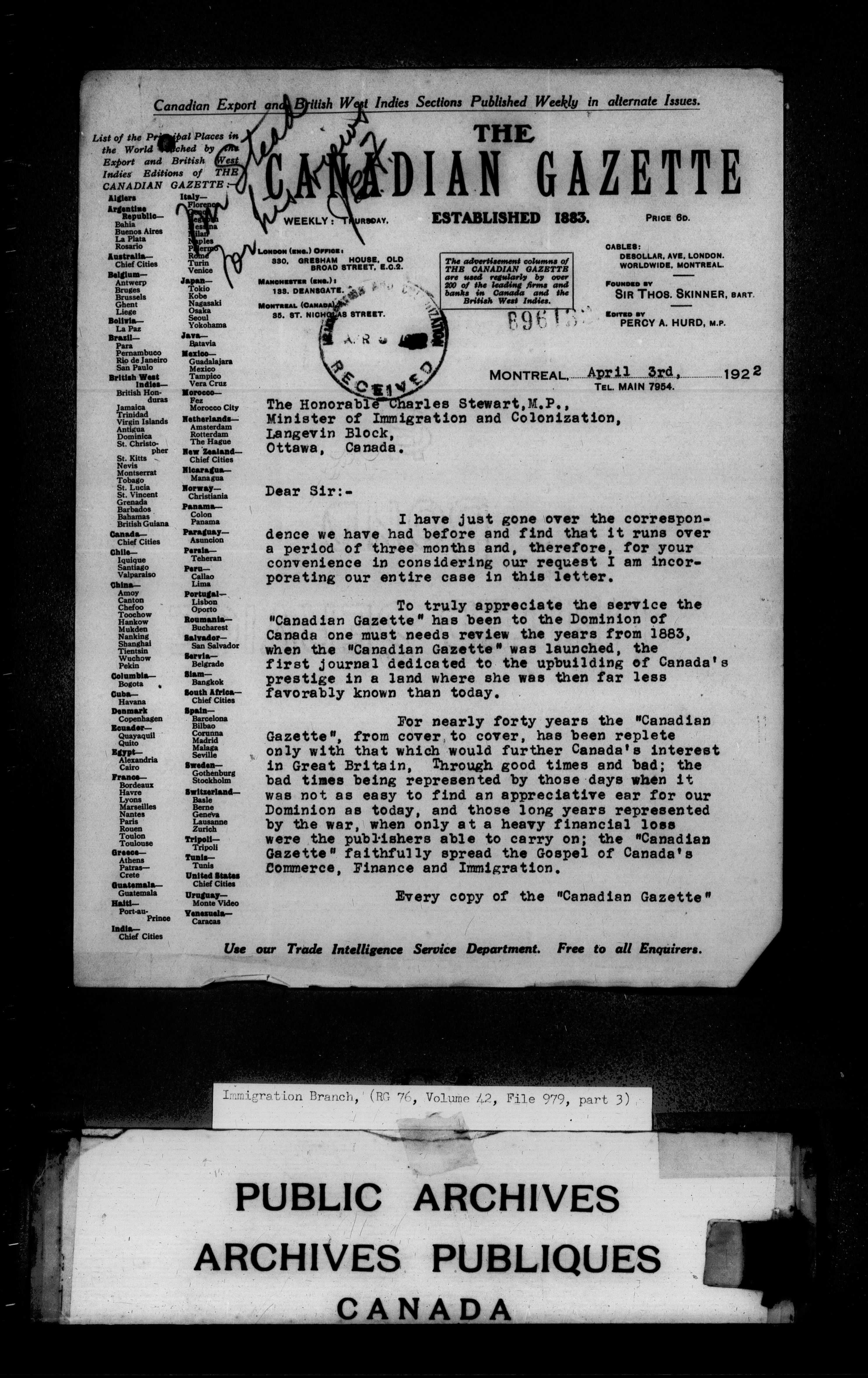 Subject, policy and case files in the First Central Registry series of the Immigration Program, 1892-1950 - 4703