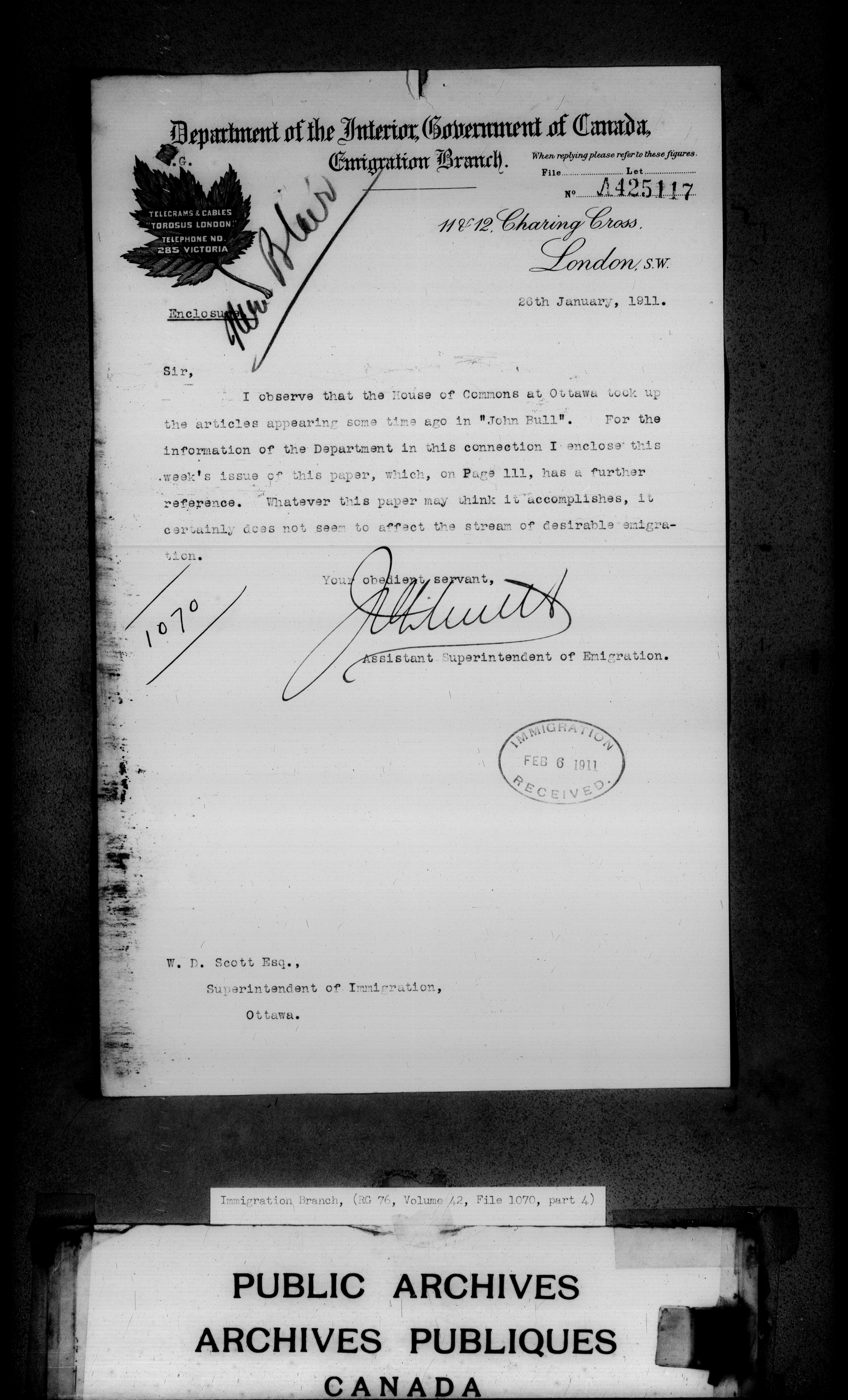 Subject, policy and case files in the First Central Registry series of the Immigration Program, 1892-1950 - 4705