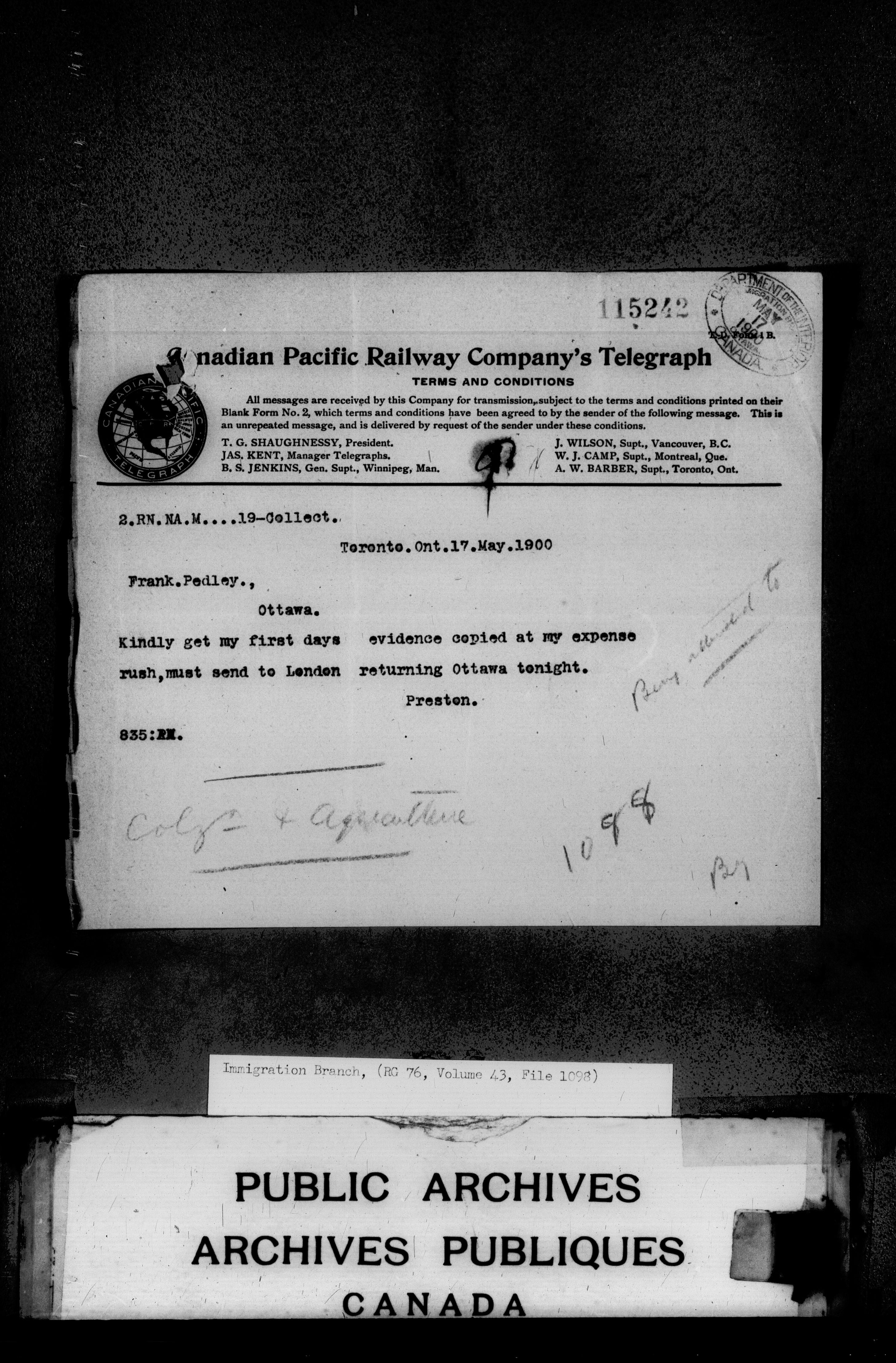 Subject, policy and case files in the First Central Registry series of the Immigration Program, 1892-1950 - 4706