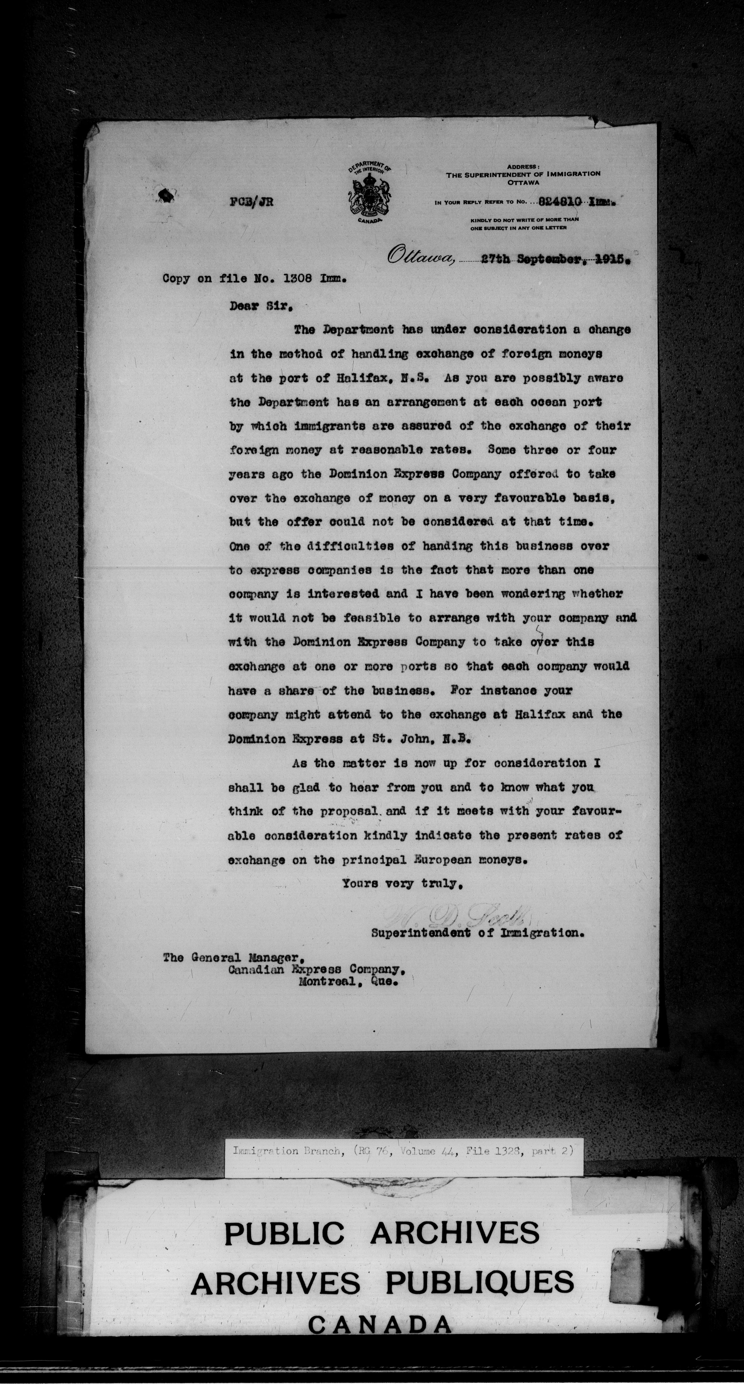 Subject, policy and case files in the First Central Registry series of the Immigration Program, 1892-1950 - 4707