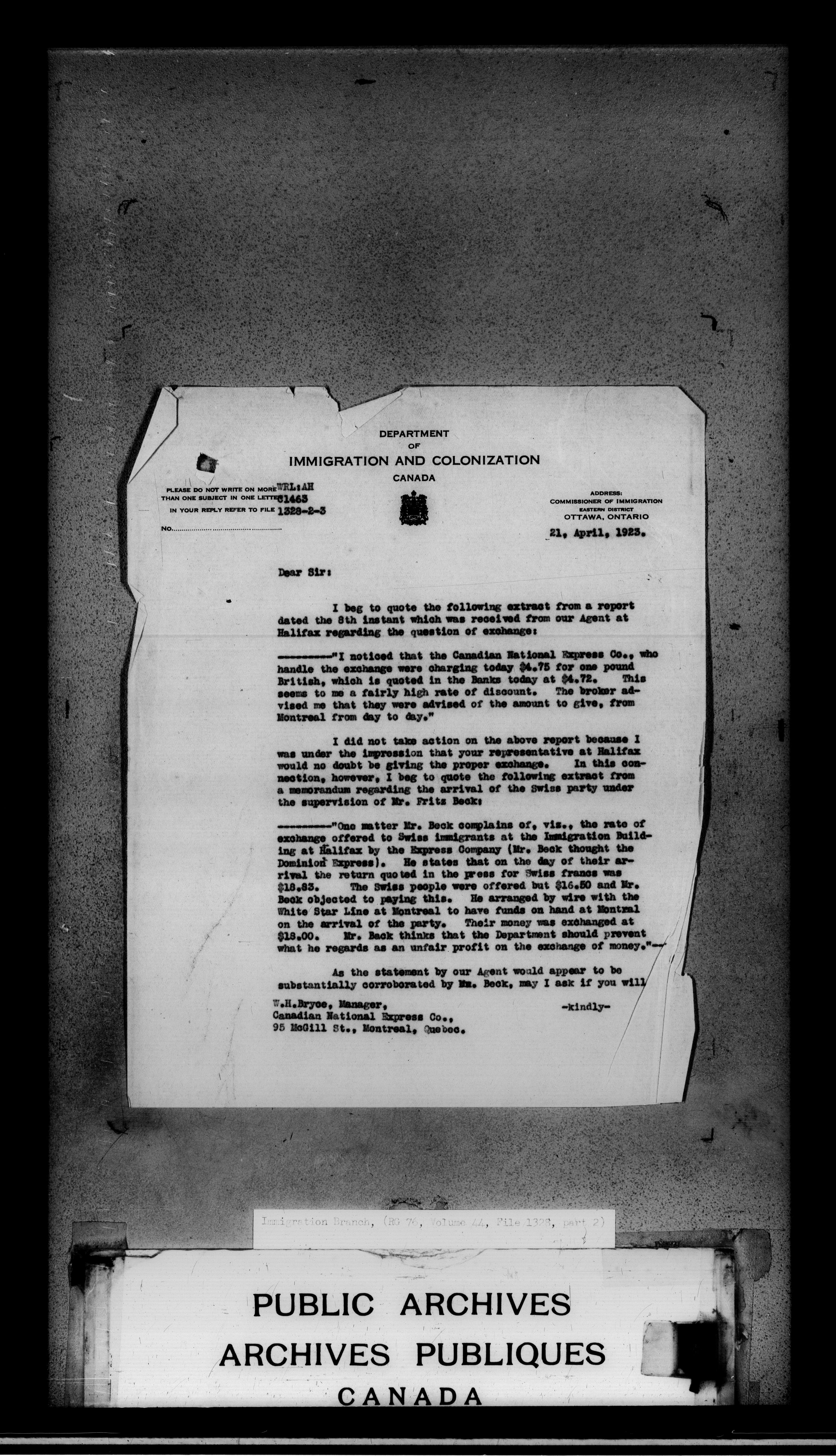 Subject, policy and case files in the First Central Registry series of the Immigration Program, 1892-1950 - 4707