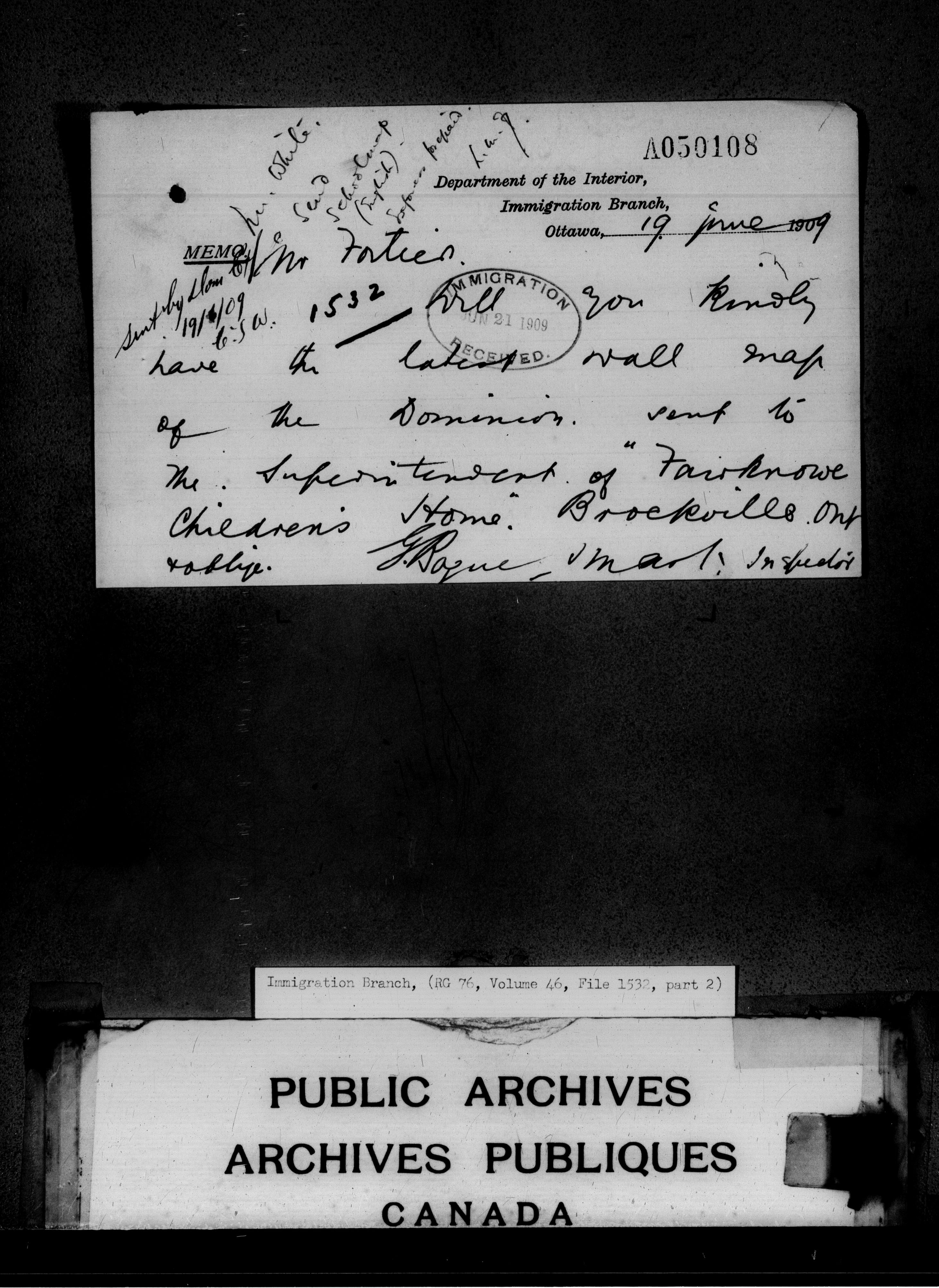 Subject, policy and case files in the First Central Registry series of the Immigration Program, 1892-1950 - 4709