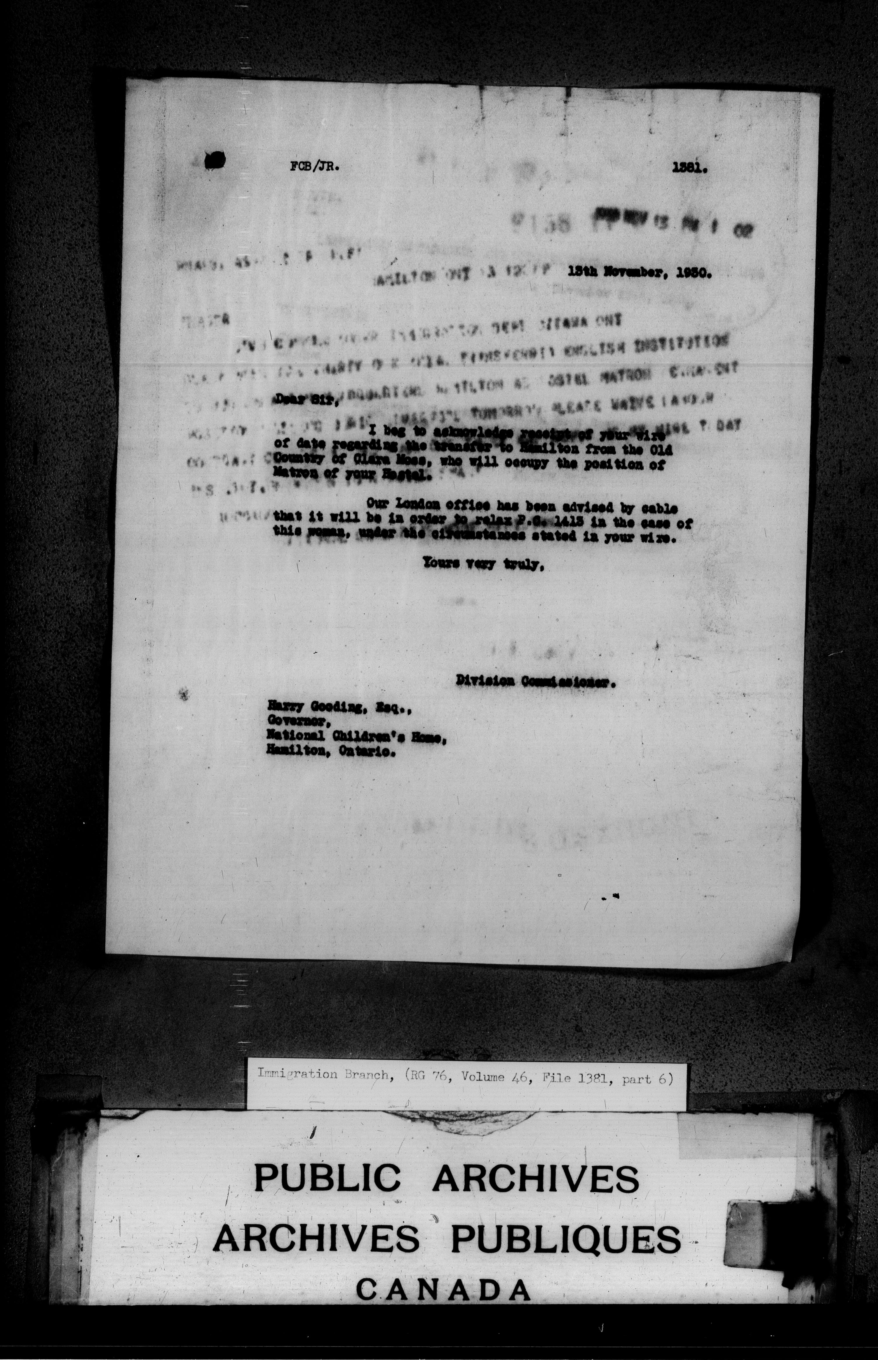 Subject, policy and case files in the First Central Registry series of the Immigration Program, 1892-1950 - 4709