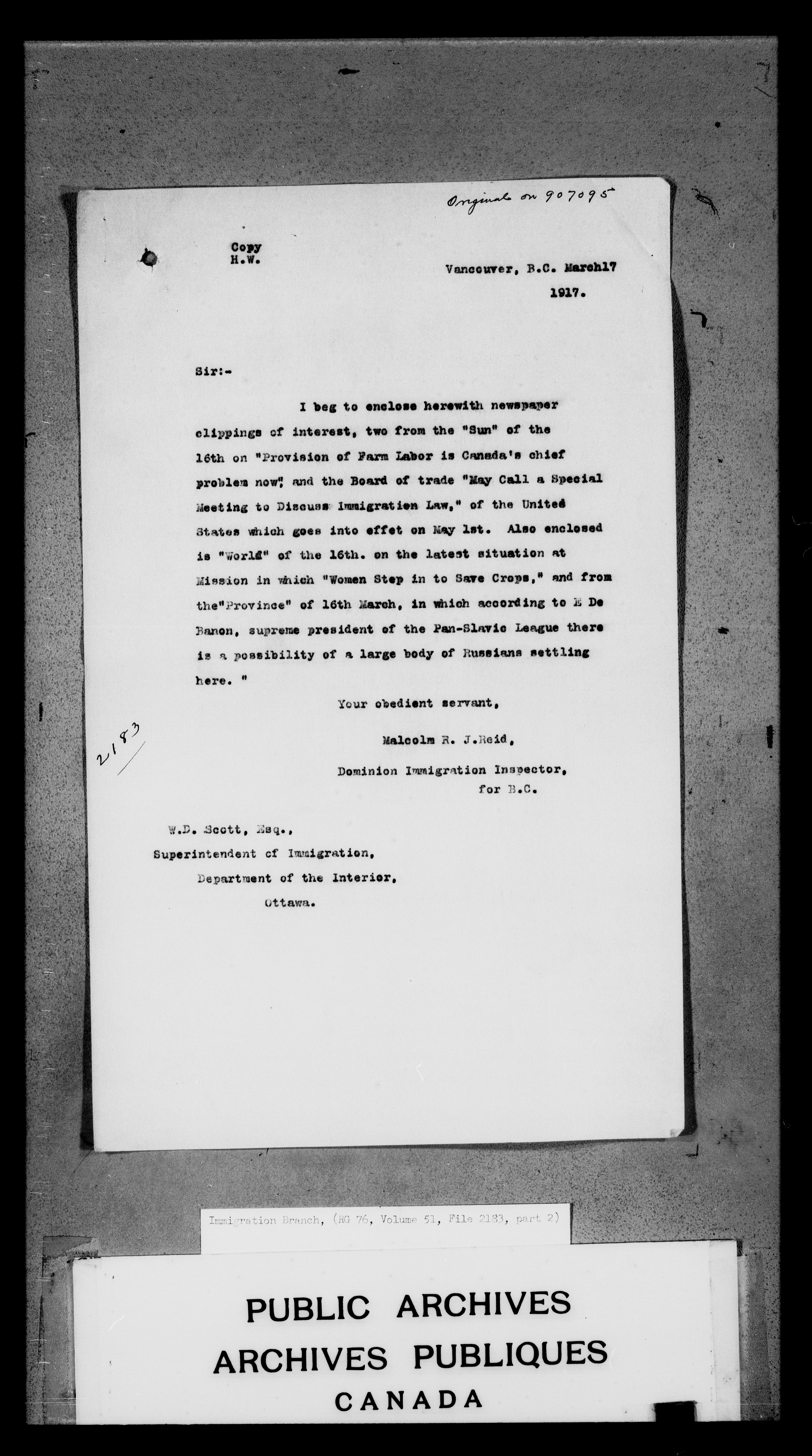 Subject, policy and case files in the First Central Registry series of the Immigration Program, 1892-1950 - 4715