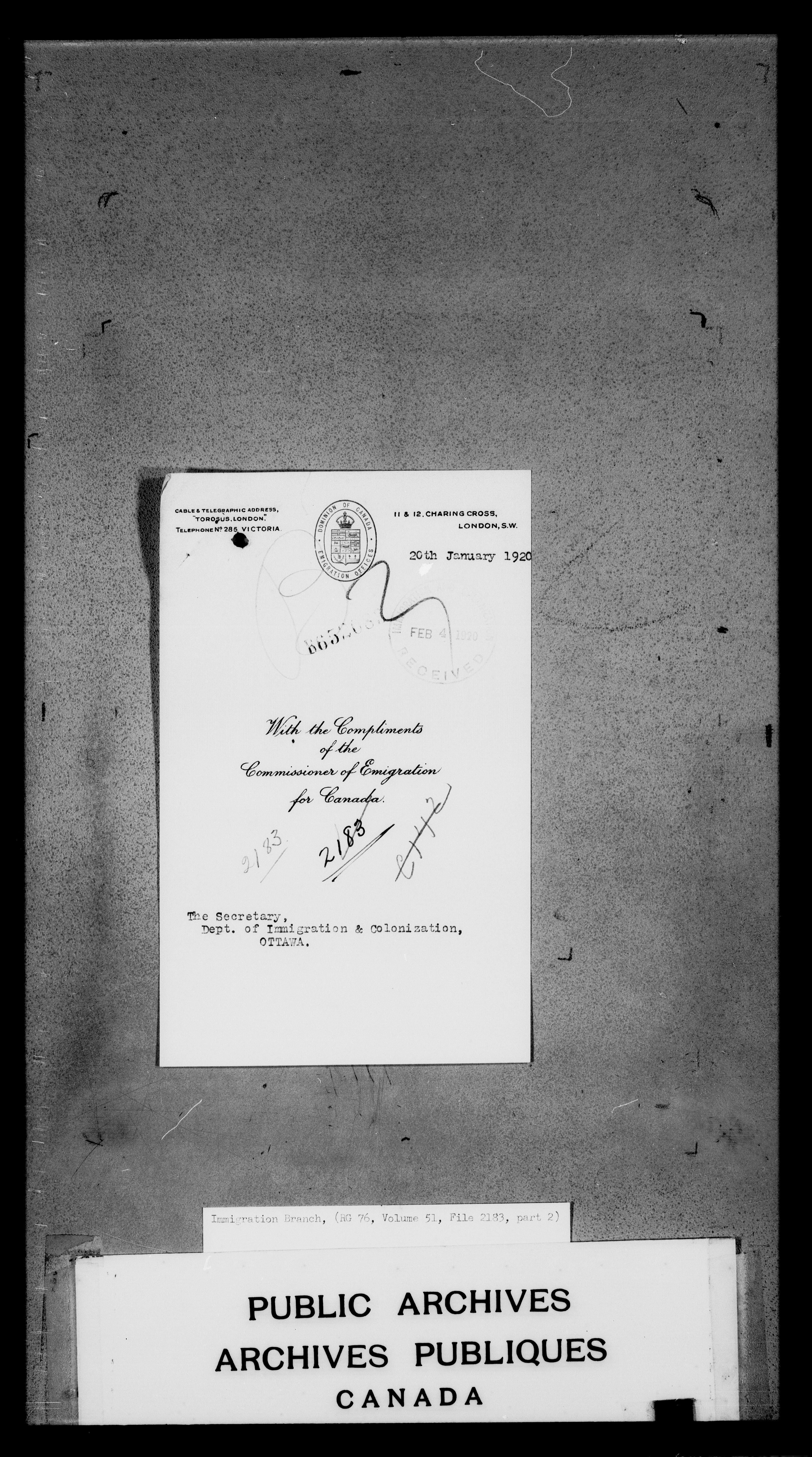 Subject, policy and case files in the First Central Registry series of the Immigration Program, 1892-1950 - 4715