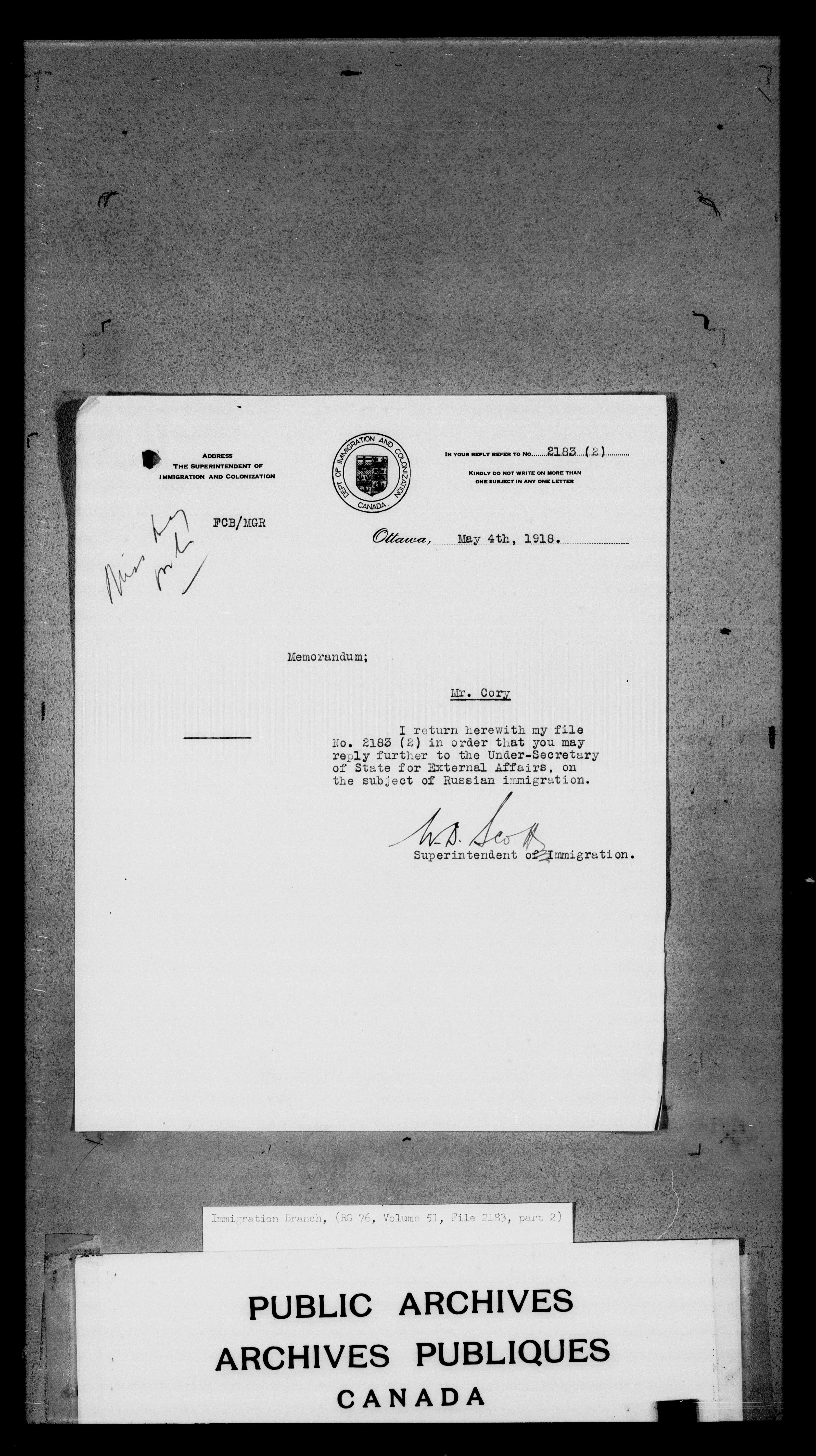 Subject, policy and case files in the First Central Registry series of the Immigration Program, 1892-1950 - 4715
