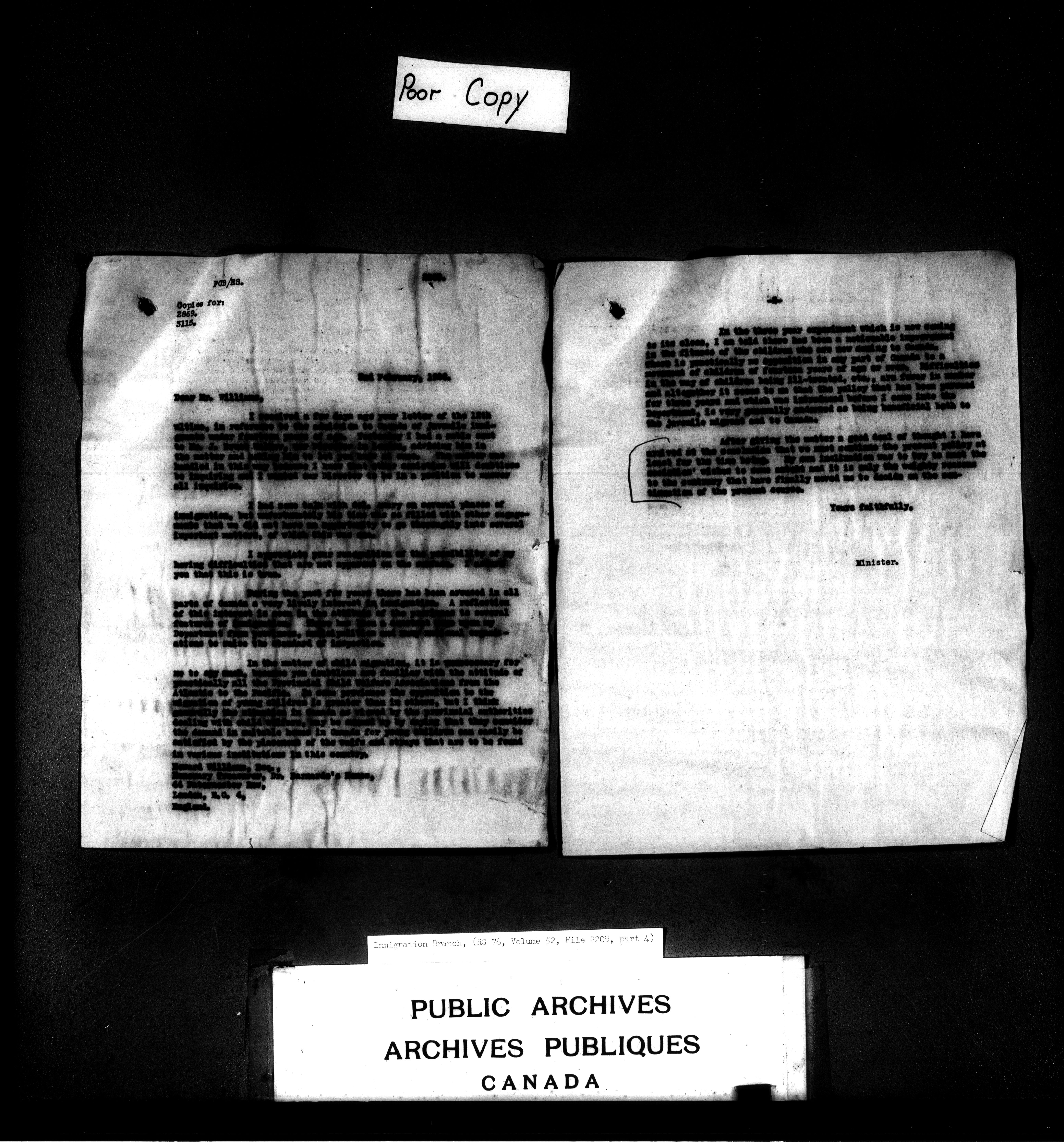 Subject, policy and case files in the First Central Registry series of the Immigration Program, 1892-1950 - 4716